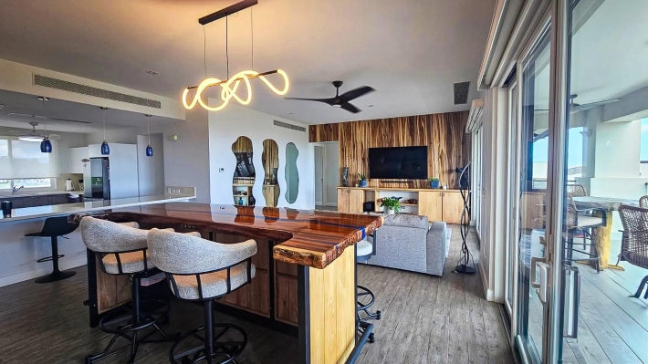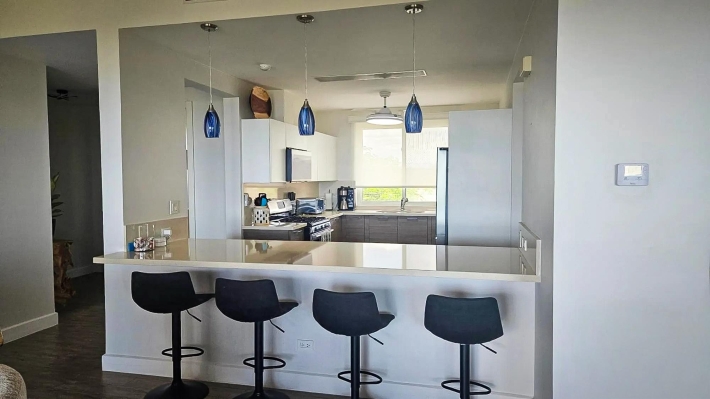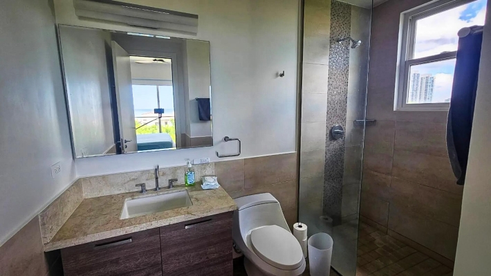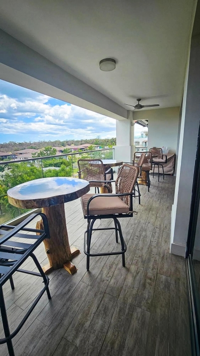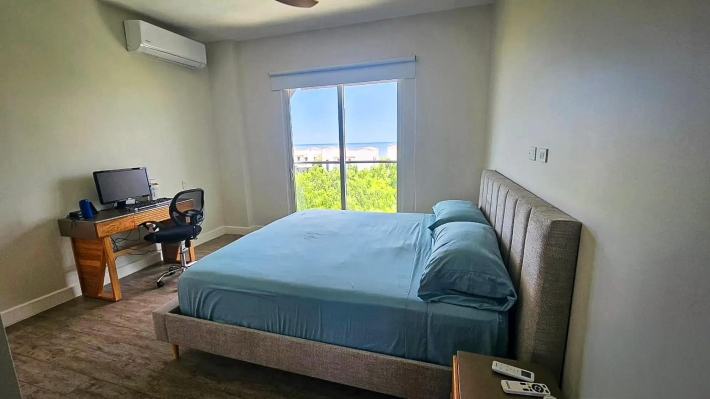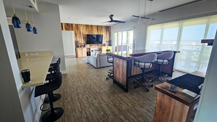 Este condominio de 3 recámaras con vista al mar en venta en Casamar, San Carlos, Panamá, se destaca porque todas las recámaras tienen vista directa al mar, no solo la sala principal. Ubicado en Marinazul dentro de Casamar, una comunidad privada frente al mar cerca de Coronado, el condominio ofrece espacios interiores abiertos, una distribución funcional y acceso completo a las comodidades. Fue pintado completamente en 2025 y está listo para mudarse. La sala principal conecta la cocina, el comedor y la sala en una distribución abierta pero definida. Una isla central es el punto de referencia de la cocina, mientras que las puertas corredizas se abren a una terraza cubierta con luz natural y ventilación. Una ventaja clave es el espacio interior adicional, que incluye un estudio y una sala familiar, ideal para una oficina en casa, sala de televisión o área de invitados. Cada recámara tiene su propio baño, además de un medio baño para visitas. La recámara principal tiene vista al mar e incluye lavabos dobles y una ducha independiente. La terraza cubierta amplía la sala con espacio para sentarse y comer, privacidad y vista al mar. Las características incluyen construcción de concreto, 2 plazas de estacionamiento, estacionamiento para visitantes, sistema de filtración de agua, lavadora y secadora reemplazadas en 2025, refrigerador, microondas, lavavajillas y aire acondicionado en las habitaciones secundarias. La cuota de la asociación de propietarios es de $450 e incluye gas y agua. El edificio cuenta con ascensores, tanque de agua de reserva y generador eléctrico. Las comodidades de Casamar incluyen 2 piscinas, 4 bohíos frente a la playa, club de playa, casa club, gimnasio, áreas ajardinadas, sistema de riego y un campo de golf de 9 hoyos con acceso gratuito para residentes.