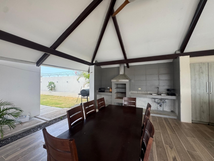 Residencia Moderna Nueva con Piscina y Casita | Nueva Gorgona cerca de Coronado Descubre un estilo de vida exclusivo en esta residencia moderna completamente nueva (2025) ubicada en Nueva Gorgona, a minutos de Coronado. Diseñada para el confort, la privacidad y el entretenimiento, esta propiedad combina arquitectura contemporánea, vistas a la montaña y amplios espacios tipo resort. Property Features 6 habitaciones en total 7 baños completos 400 m² de construcción 1,800 m² de terreno Construcción 2025 – a estrenar Casa principal con 3 recámaras, todas con walking closet Sala, comedor y cocina moderna Techos altos que brindan amplitud y frescura Piscina grande + jacuzzi Bohío con horno y área de BBQ/bar Duchas exteriores Casita independiente con sala-comedor y 2 recámaras con baño Habitaciones adicionales hasta completar 6 Depósito Amplio estacionamiento Jardín y área verde extensa Propiedad completamente cercada Aires acondicionados Sistema de cámaras de seguridad Vista a las montañas Comunidad y Estilo de Vida Ubicada en Nueva Gorgona, cerca de Coronado A 5 minutos de la playa A 8 minutos del centro comercial de Coronado Zona tranquila con acceso rápido a servicios Ideal para residencia familiar, casa de playa o inversión Una propiedad única, moderna y lista para estrenar con espacios diseñados para disfrutar al máximo. Contáctanos hoy para agendar tu visita privada.