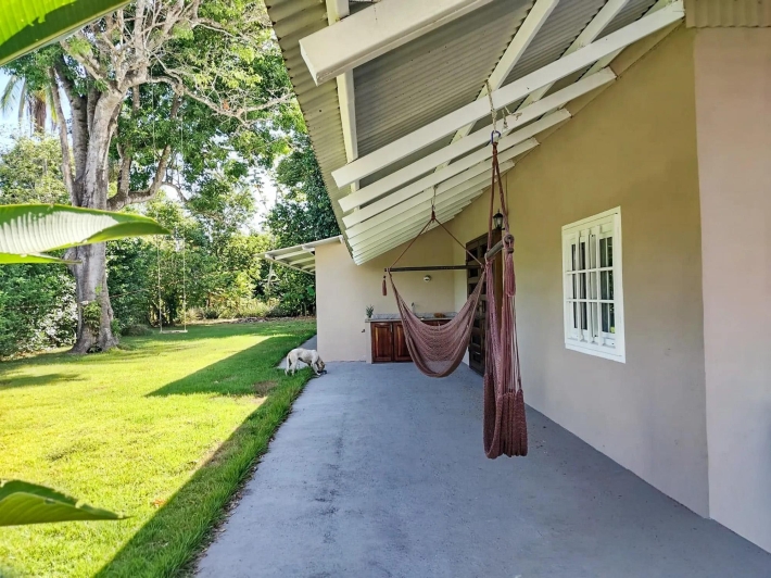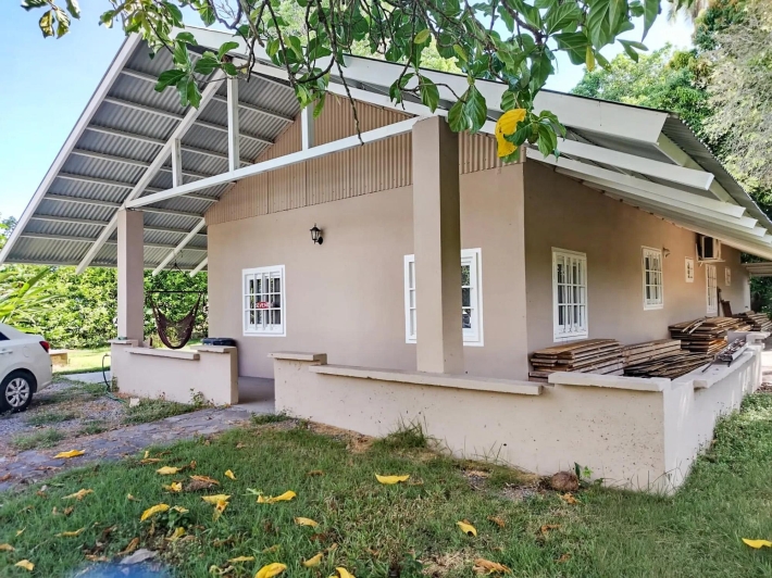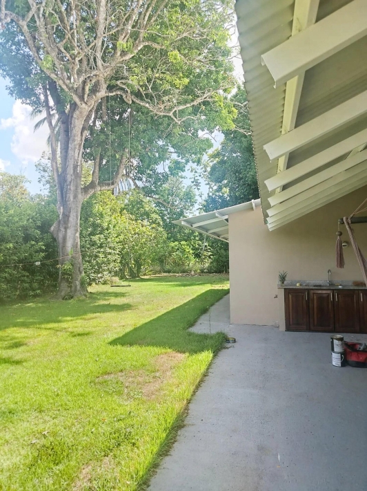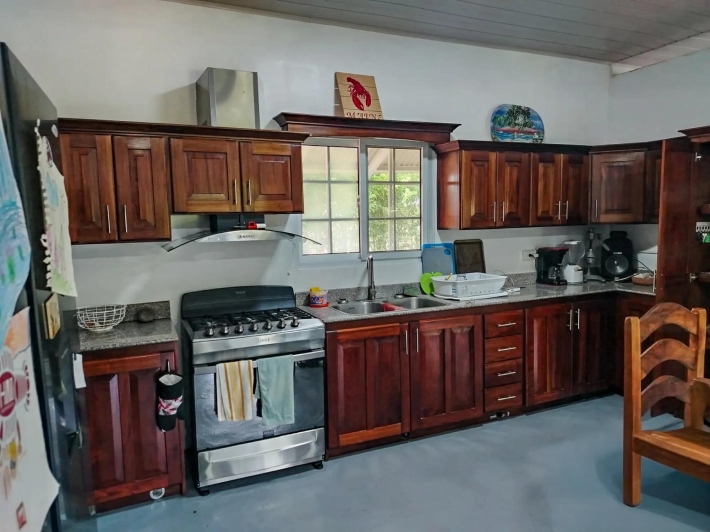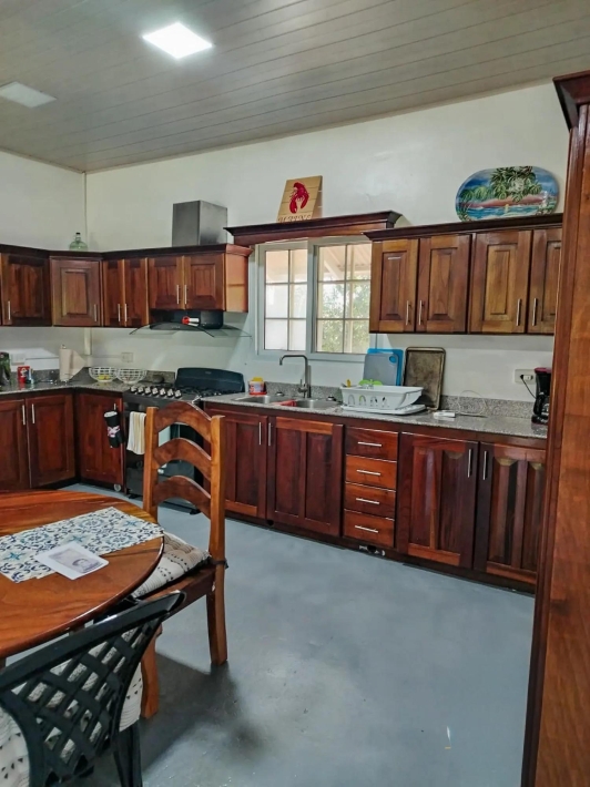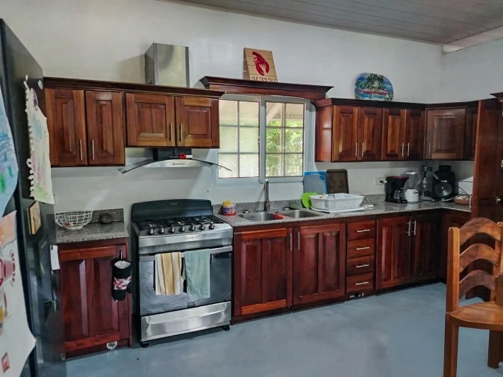 Located in El Cacao, Guarumal (Alanje), 6.8 km from Guarumal on a paved road and about 8 minutes from the beach. The property sits on 1,610.40 sqm of flat land with 180 sqm of construction, offering a practical layout suited for full-time living or a low-density coastal setting. The Home Simple and functional, easy to maintain or adapt. It includes: 2 bedrooms 2 bathrooms Open kitchen with wood cabinetry Living and dining areas with natural light Covered terrace with hammock space The kitchen comes equipped with stove, refrigerator, washer, and dryer. Bedrooms are spacious, and ceiling height supports airflow. Outdoor & Land Fully flat and usable, suitable for gardening or expansion. Includes: Mango (2), noni (2), marañón curazao, calabazo, pineapple plants, and a limoncillo living fence A private well adds independence, and the outdoor space is shaded and usable. Additional Features Backup water tank Private well Covered parking/storage Paved access Flat topography Area – Alanje, Chiriquí Located west of David with access to La Barqueta Beach, Guarumal, Santo Tomás, and Alanje town. The area offers basic services and a mix of residential and agricultural land, attracting buyers seeking accessible property near the coast.