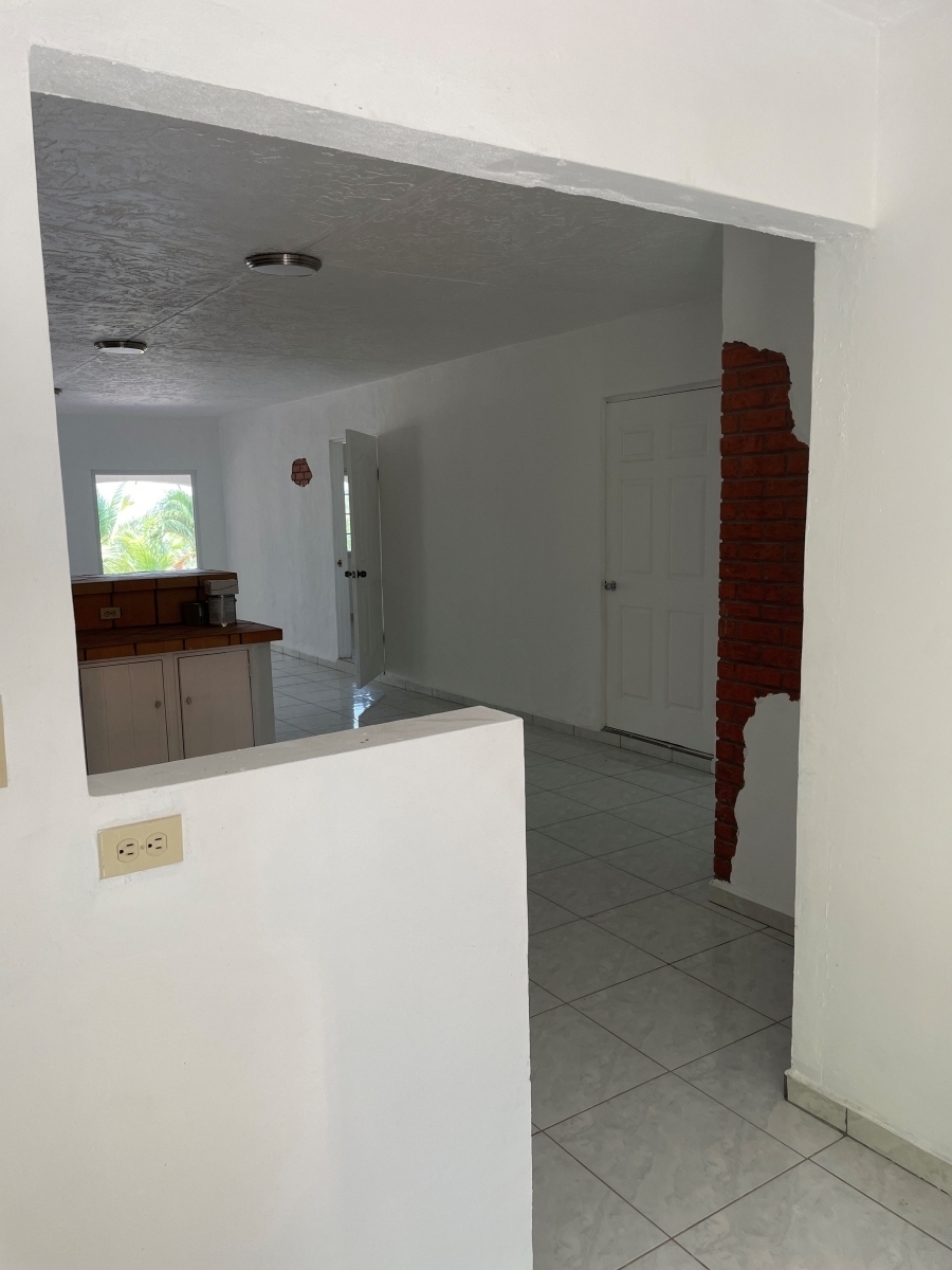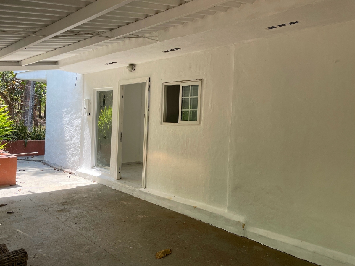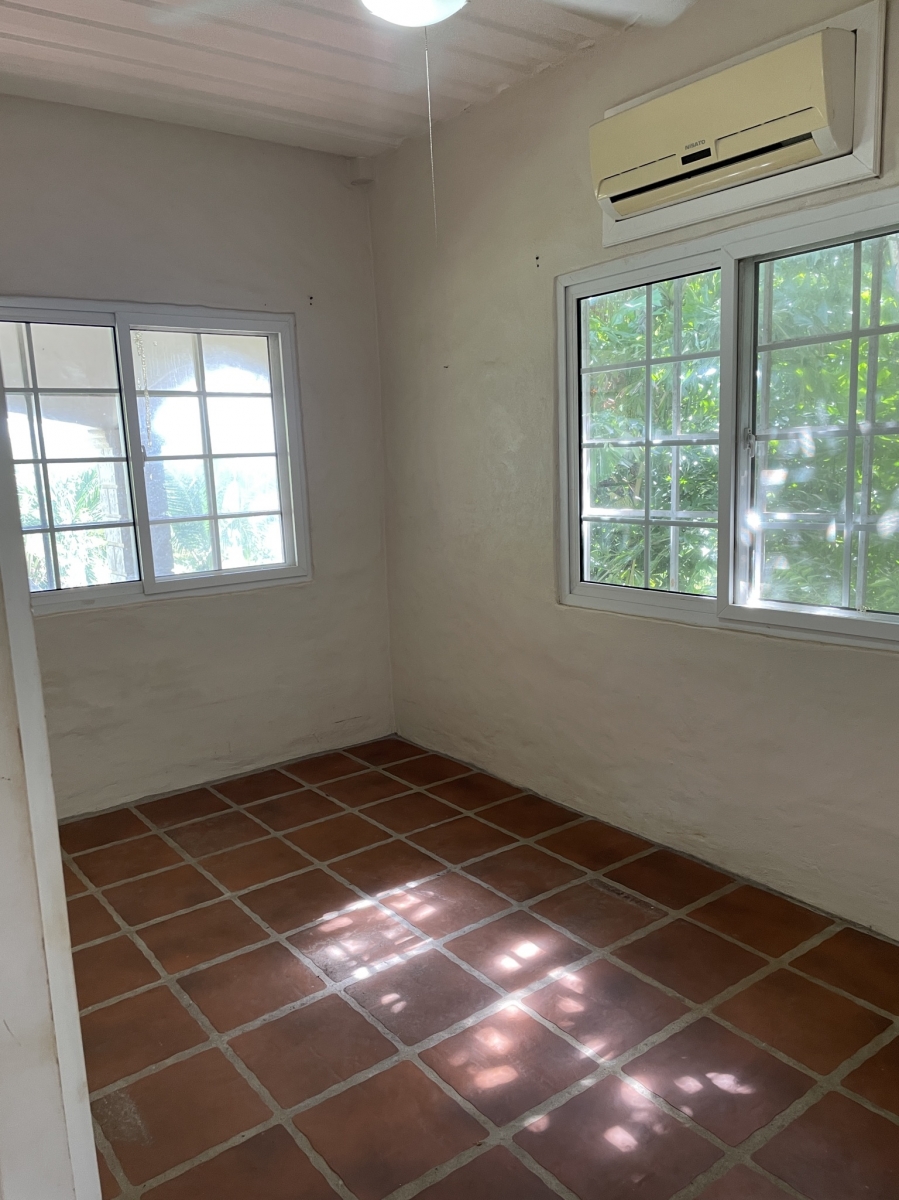 The air-conditioned house is simple and cosy and offers 3 bedrooms, 1 bathroom on 100 square metres plus 2 35-square-metre terraces to catch the morning and evening sun and shade. A very large kitchen and pantry give you the storage room to stay on your island and not have to go shopping too often. Under the house there is a 40 x 40-foot storage room.