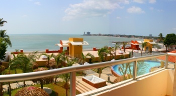This residential project is completely enclosed, containing two Towers with 156 apartments and a building with 24 studio apartments. Its roof becomes the main deck of the open social area. These apartments will have all the commodities and a exclusive view of the sea from every main area of your apartment. The apt is one of the units in the South Building which is the one you see out front on the beach. It is the end unit so is bigger than the other units in the middle.