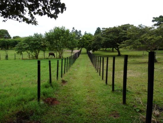 The perimeter fence is completed with 4 lines of barbed wire with stakes of nispero, dipped in oil (for termites) and grounded in cement. These estacas/posts can easily run 5-6 USD each. The property has creeks, springs, and lots of flat areas with exceptional ocean views.