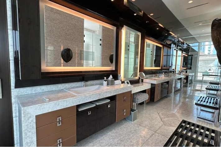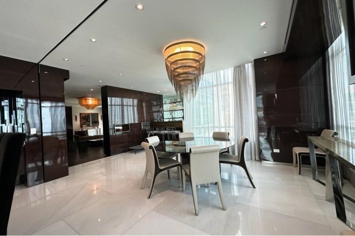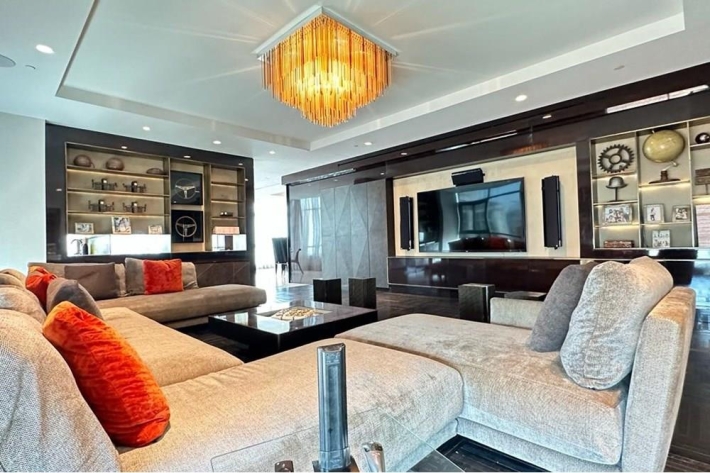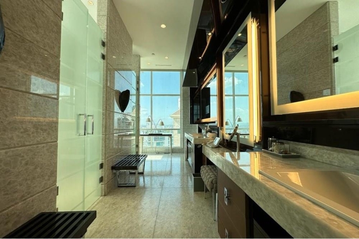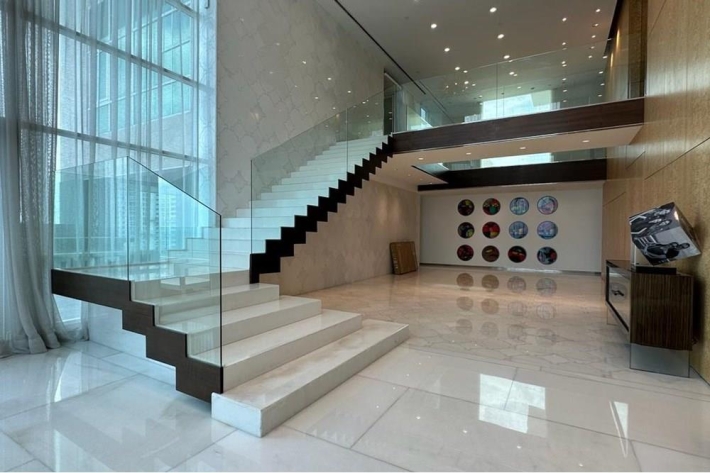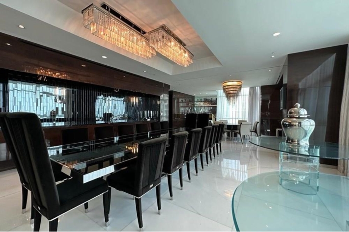As soon as you enter the apartment you will be in awe of the magnificent 6 meter high ceilings with floor to ceiling windows that provide unique views towards the Pacific Ocean and the islands of Ocean Reef. And this is just the beginning of the luxury experience. The owner has spared nothing, with beautiful Italian marble floors, exotic wood paneled walls (Tamo), custom lighting by La Marina, onyx-clad bathrooms, and Fendi Casa furniture completing the experience. You'll love the four spacious bedrooms, including the master, featuring elegant boutique-style his-and-hers walk-in closets lined in Alcantara leather and a private terrace.