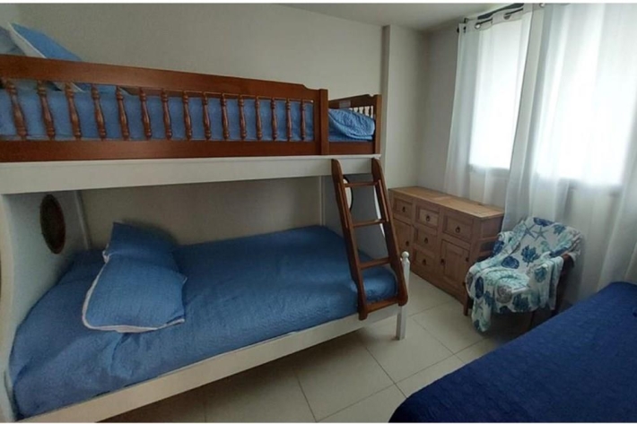 - 2 and a half bathrooms Includes air conditioners in all areas, beds, dining room, living room furniture, TV, stove, oven, refrigerator, barbecue, bedroom furniture, lamps and curtains. Built-in stove and oven, water heater and breakfast bar over the sink. It also has an internal storage room with its door and a parking lot next to the entrance of the building making it unique within the complex.