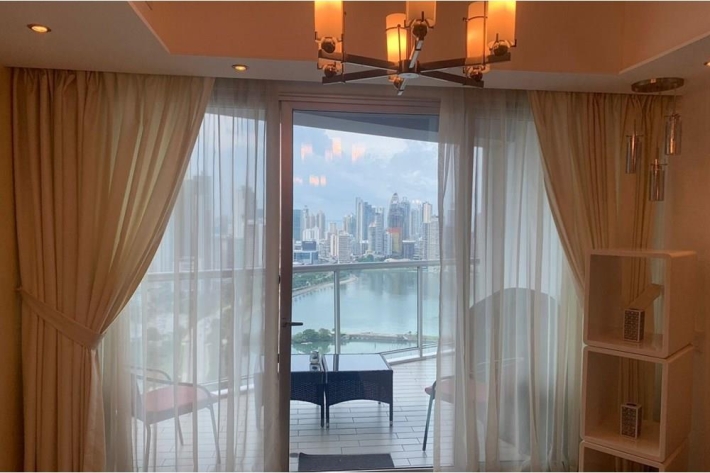 Fully furnished apartment for rent on Avenida Balboa. The apartment has balconies with spectacular ocean views from the living room and bedrooms. It has 151 m2, 2 bedrooms, 2 bathrooms, guest bathroom, dining room, kitchen, laundry room, 1 parking space, 24 hour security checkpoint, social area with swimming pool, gym, party room, children's play area.