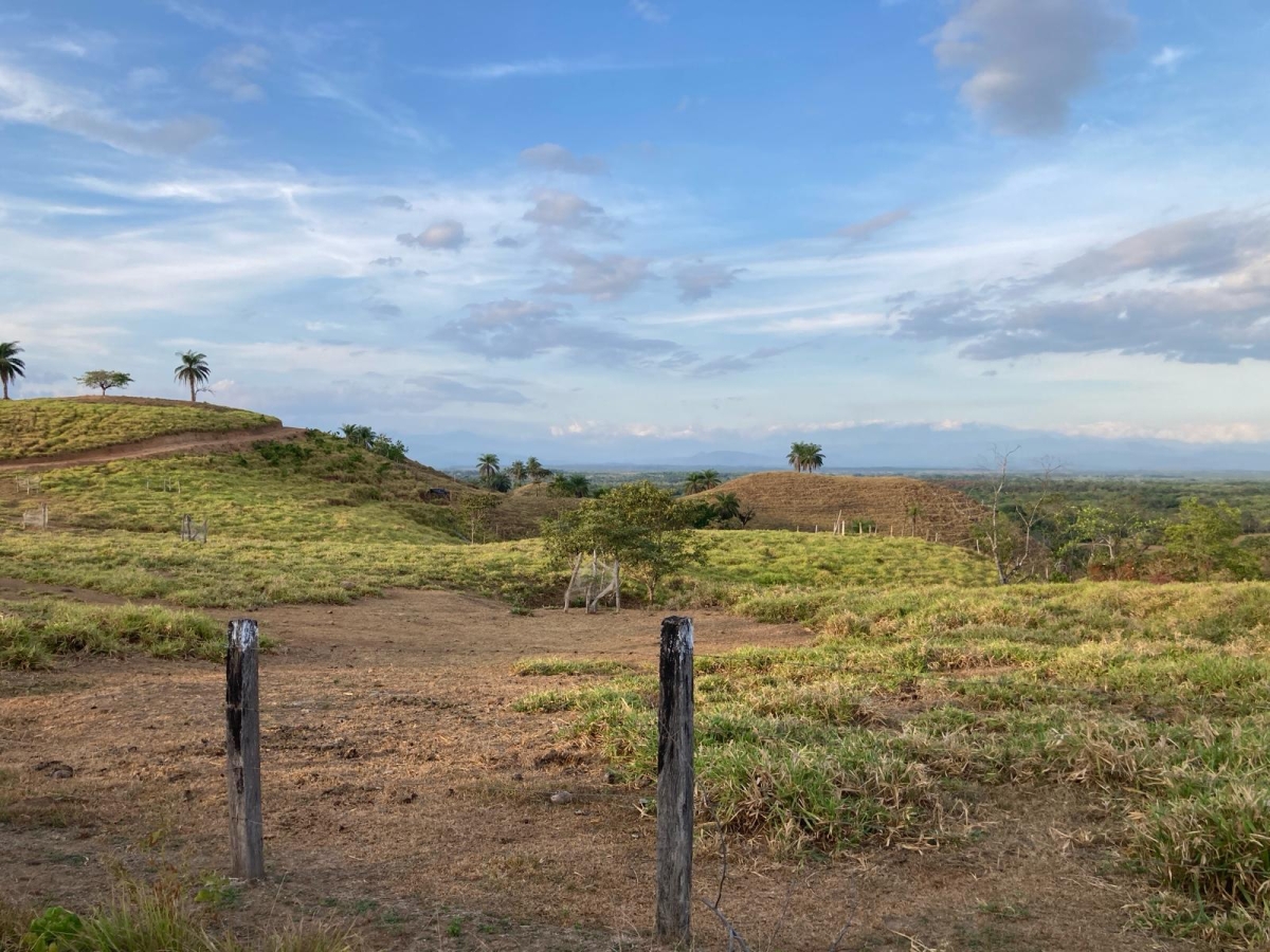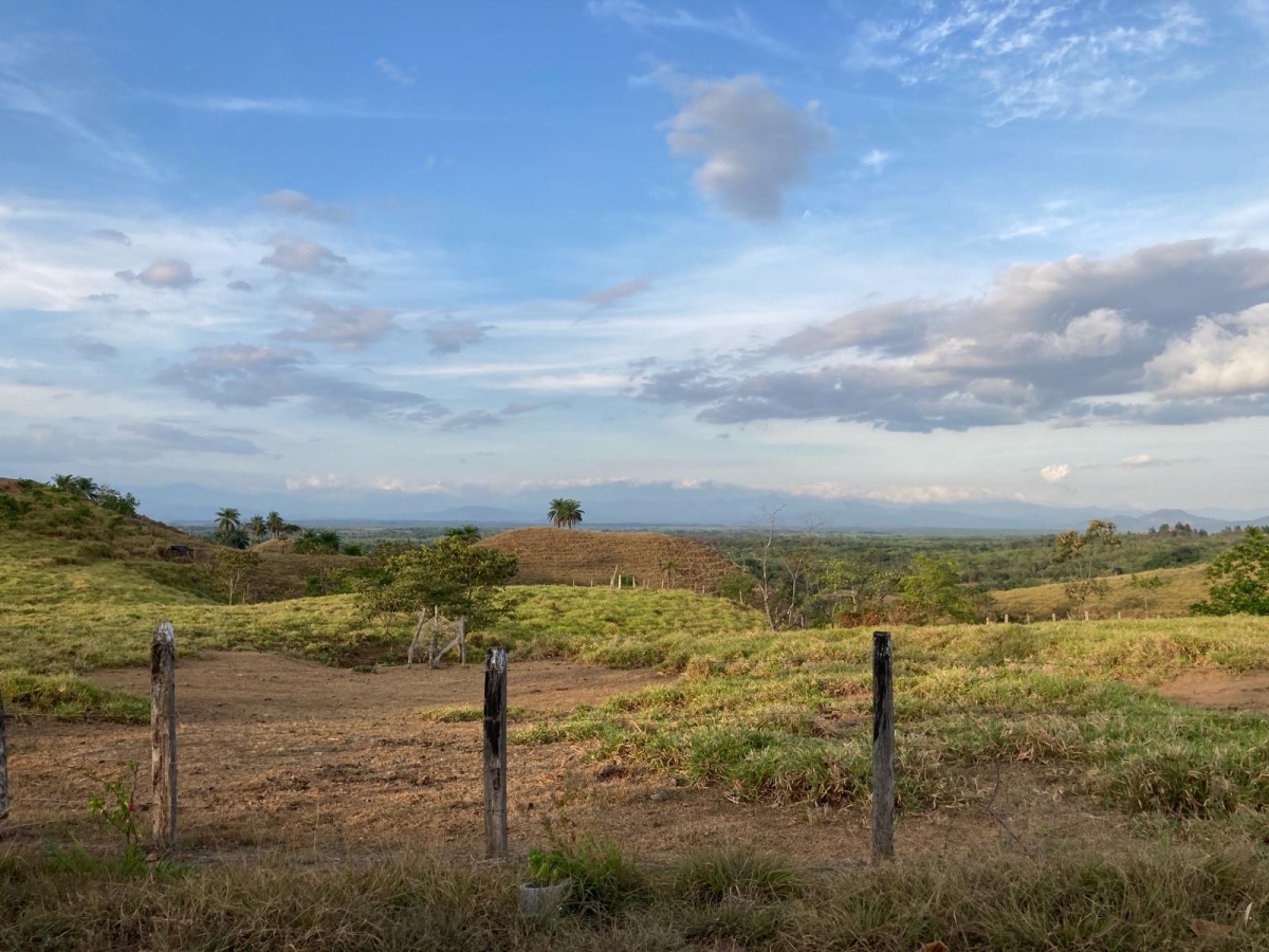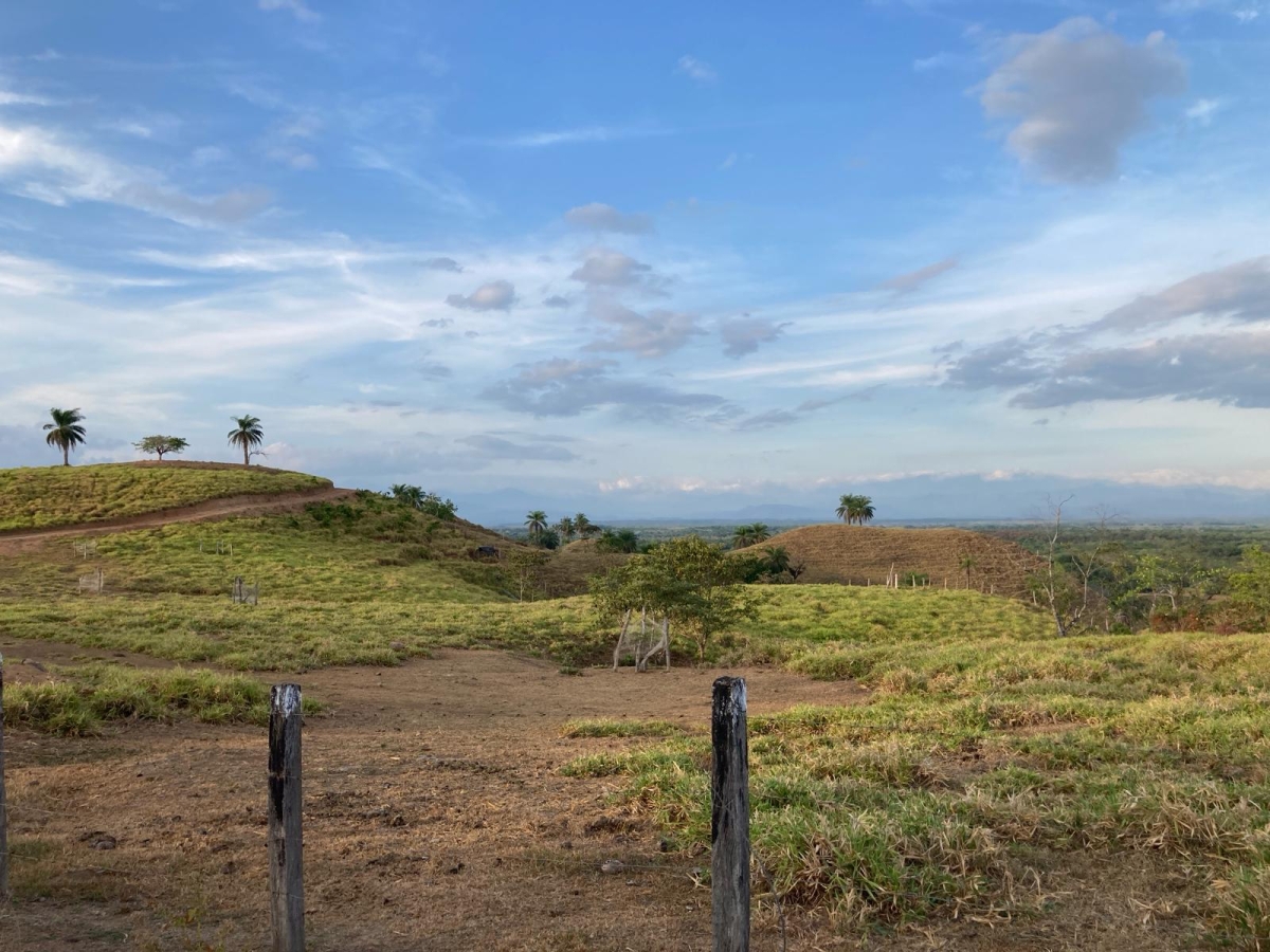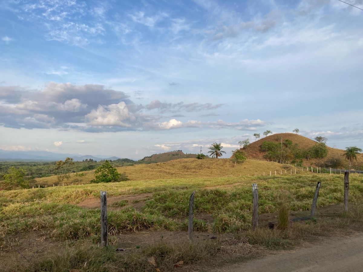 This lot with sweeping views of rolling mountains is located directly on the paved road to Boca Chica.