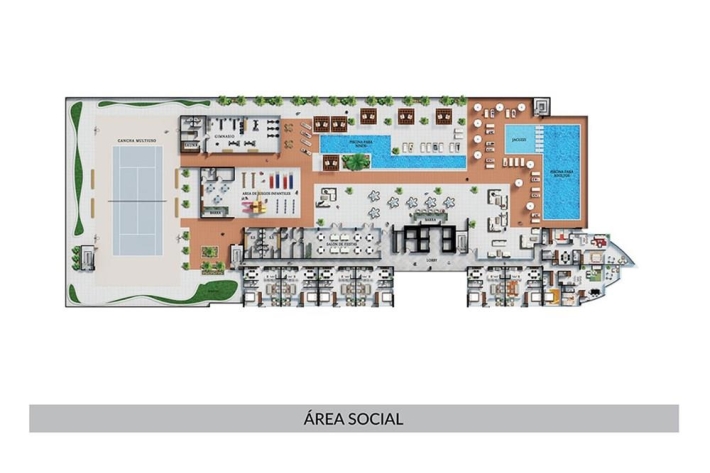 Level 300: includes multipurpose court, terrace, sun deck, gym, sauna, children's games, party room, jacuzzi and family pool
