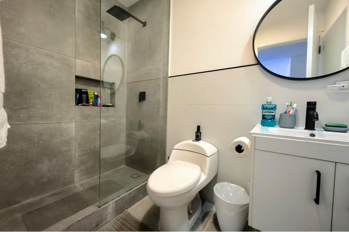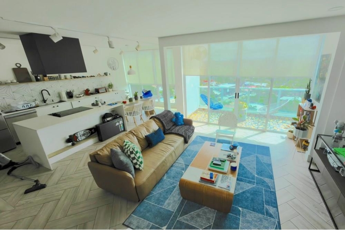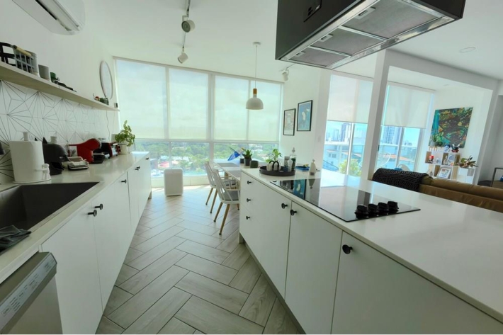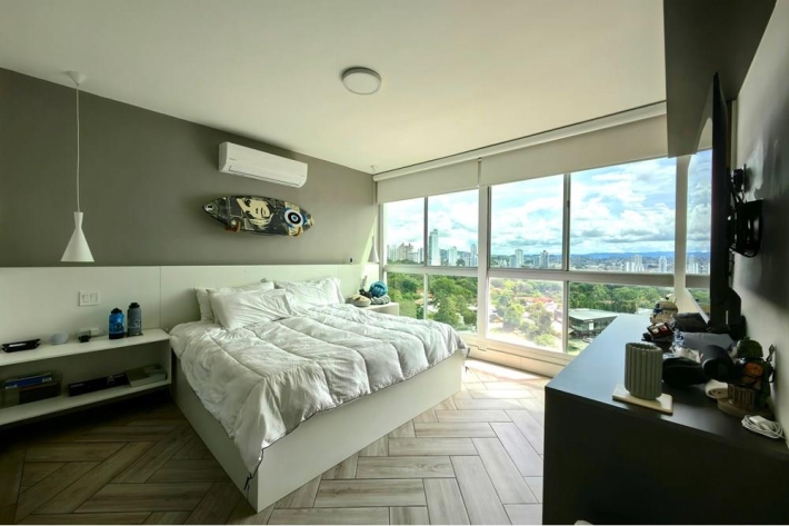 Among its features, this beautiful apartment, fully renovated, has on its first level a spectacular living-dining room with balcony and panoramic views, an open kitchen with fully equipped laundry with built-in appliances including a dishwasher, and a guest half bathroom. On its second level, there are two bedrooms with their private bathrooms. Additionally, it is equipped with split-type air conditioners in all its areas and has a practical storage room. Security is guaranteed thanks to the 24-hour surveillance booth.