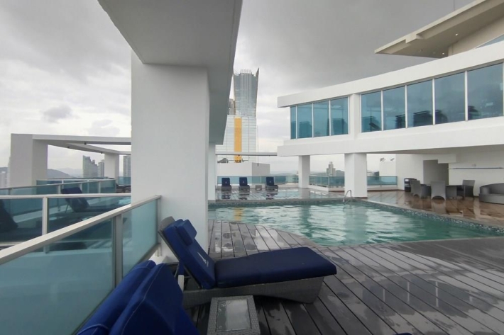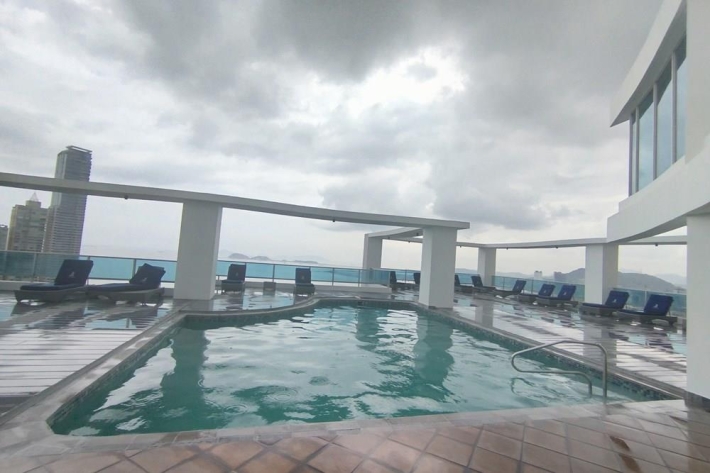 The Grand Bay Tower includes a rooftop social area with a beautiful pool and a fascinating view of the Pacific Ocean.