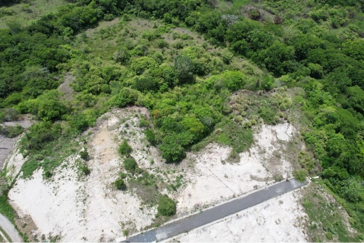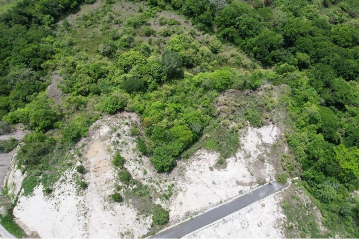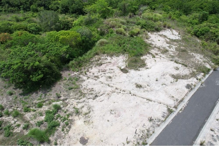The terrain is irregular in shape and topography is mostly flat, with a slight slope that runs towards its lateral part, partly covered with thin undergrowth.