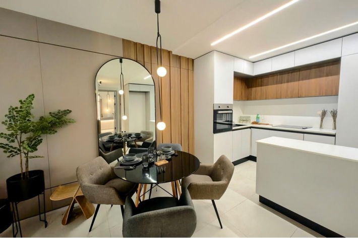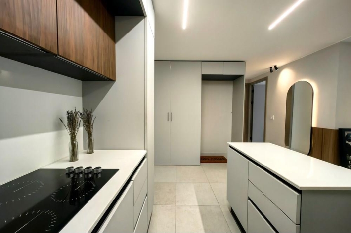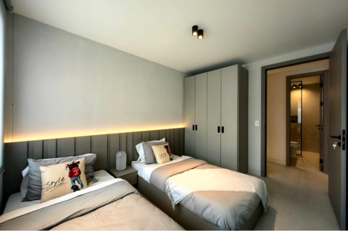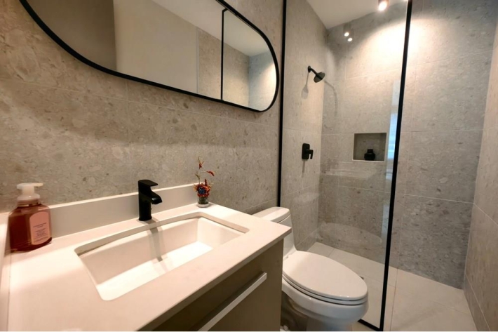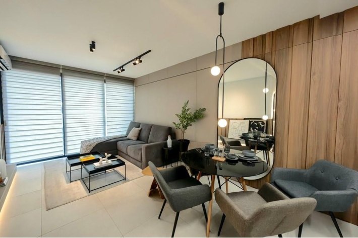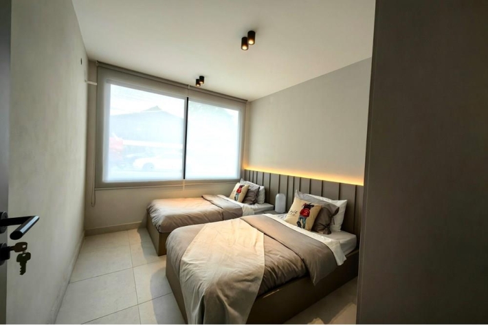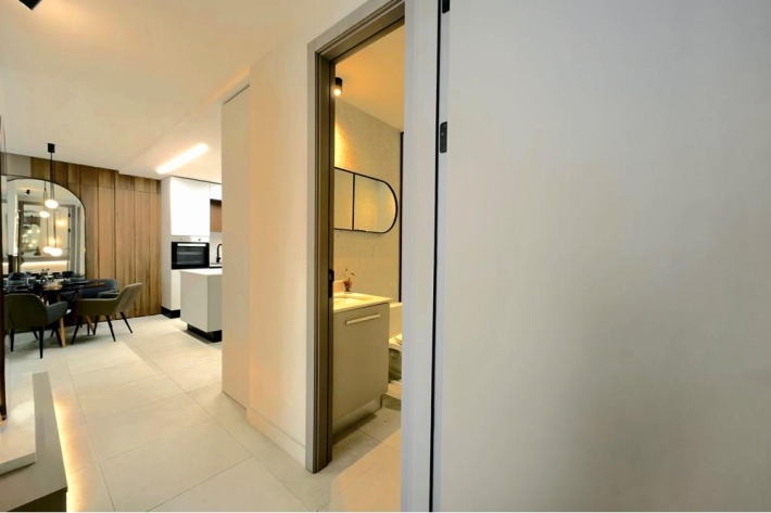 5cero4 residences, available in 2-bedroom configurations of 80.50 m2 and 82.50 m2, are fully electric and designed for complete living. They feature spacious bathrooms, walk-in closets, kitchens with Aran Cucine islands with quartz countertops and backsplash, large living rooms, two bathrooms, balconies, and one parking space. High-quality materials ensure excellence in every corner of your home, with Italian furniture in kitchens, bathrooms, and closets, and solid cement block construction for perimeter walls.