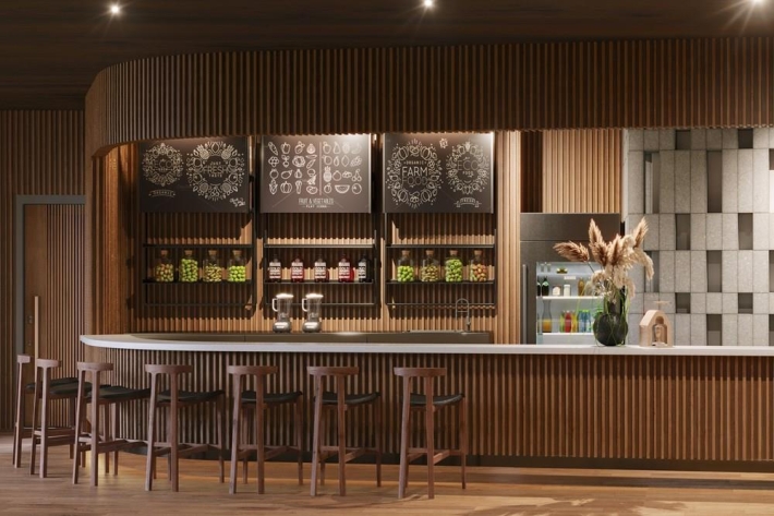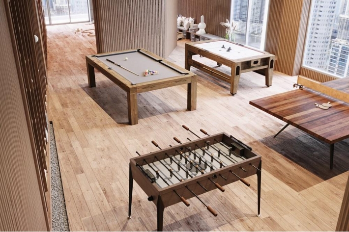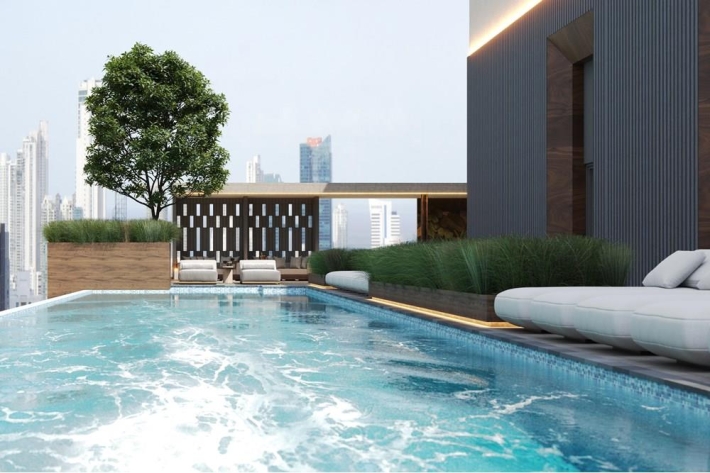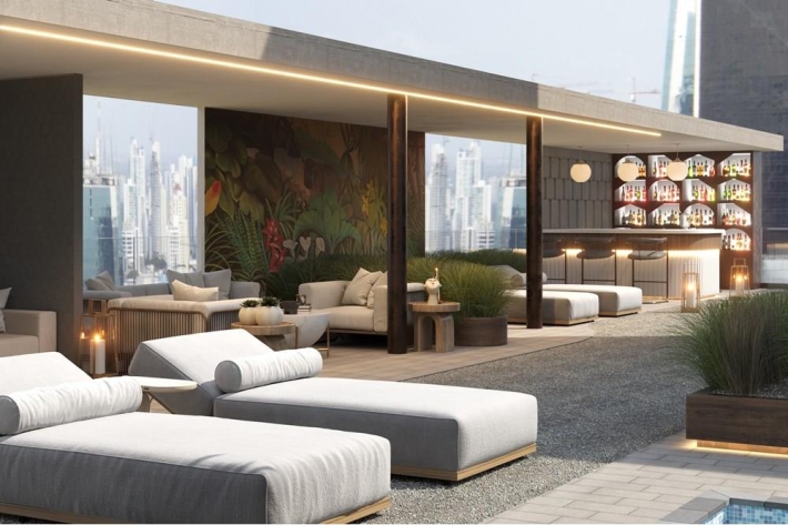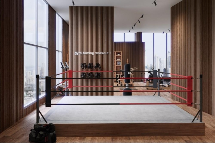 With three levels of amenities spread across 2,000 m2, including a rooftop with spectacular views, a semi-Olympic pool, pool bar, stretching and massage areas, gym, co-working space, cinema room, game room, children's playground, barbecue areas, squash court, boxing ring, Sky Lounge, storage spaces for bicycles and scooters, juice bar, yoga room, treatment rooms, reading area, café, meeting room, and library.