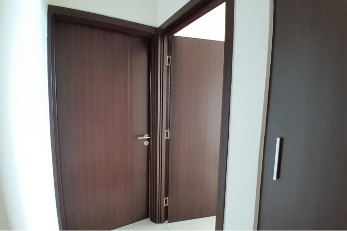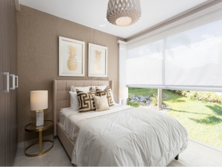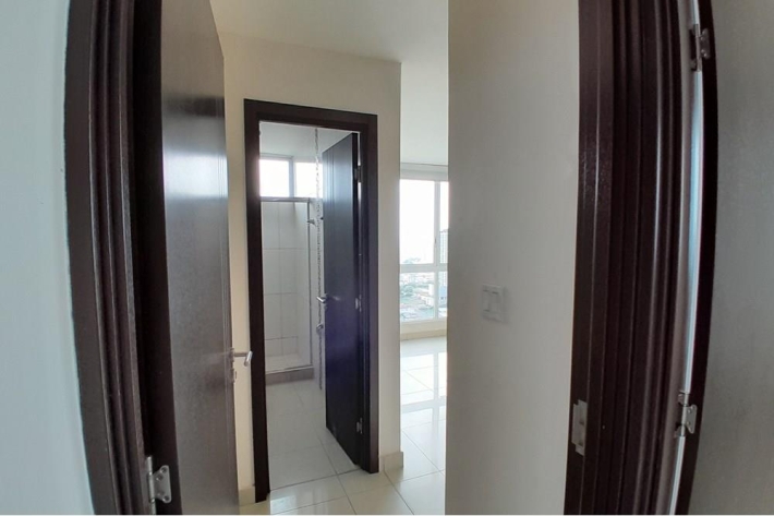 The apartment has three large rooms, all with excellent natural lighting and ventilation. The master bedroom includes a private bathroom, while the other two bedrooms share a second full bathroom, both designed with modern, high-quality finishes.