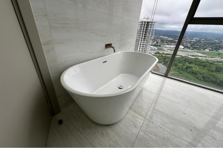 Enjoy stunning 360° views of the Pacific Ocean and city from floor-to-ceiling windows