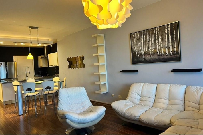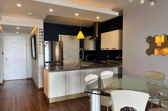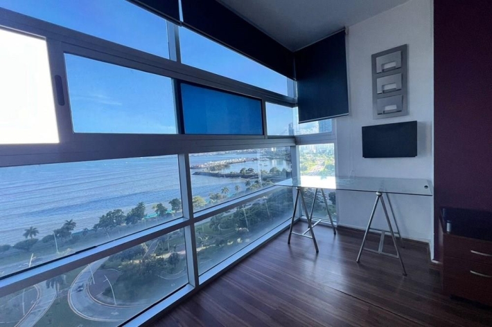 Comfortable apartment for rent with ocean views on Avenida Balboa. The apartment consists of 122 m2 with 2 bedrooms, 2 bathrooms, the main one with a bathtub, dining room, open kitchen, balcony, 1 parking space, laundry, 24-hour security. The apartment is furnished, including stainless steel appliances, social area with pool, gym, party room, children's play area. This apartment offers a spectacular view of the bay, has everything you need to move in and live comfortably and steps from restaurants, shopping centers, offices, supermarkets, pharmacies.