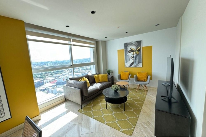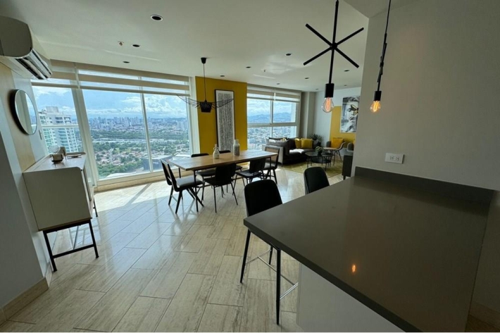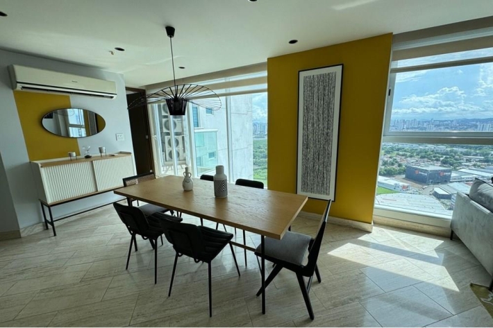 We offer for rent an elegant 105 square meter apartment in the exclusive area of Costa del Este. This modern space has two rooms, providing a comfortable and welcoming environment for its residents. The open kitchen is designed to integrate perfectly with the living room, ideal for those who enjoy a spacious and bright space.