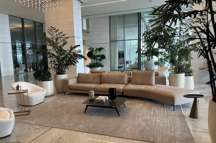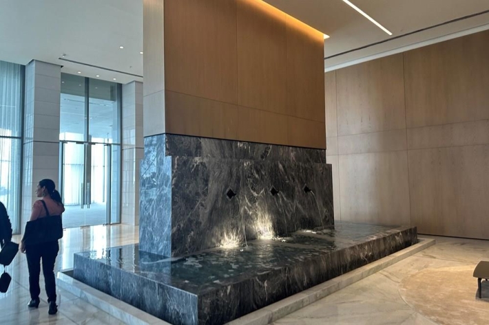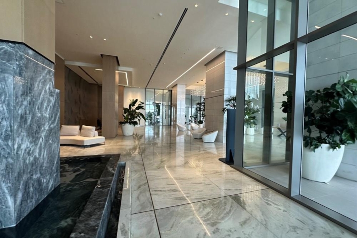 Absolutely stunning floor-to-ceiling glass lobby right on the water