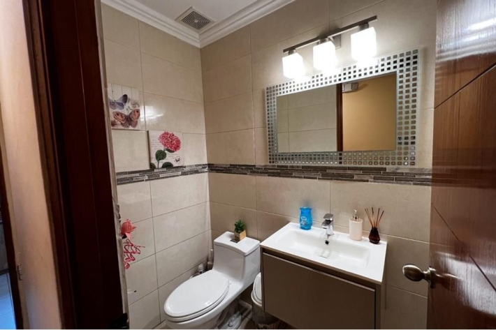 Closed area: it has porcelain tile floors along with a gypsum ceiling and Tejalit roof. The walls are made of plastered blocks, painted on both sides, with decorative coating and some with 3D laminate.