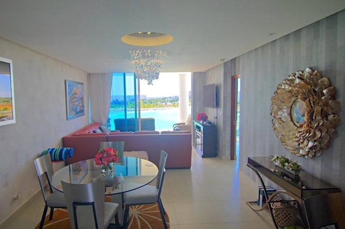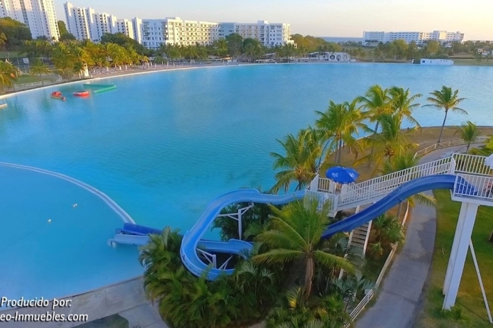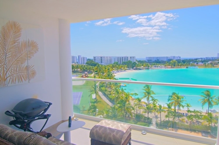 Housed in a modern 17-story building with three elevators per tower, the apartment features a private balcony with stunning lagoon views, a laundry area, and an assigned parking space. Residents also have access to an exclusive social area.