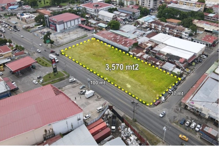 This large lot, located on Vía España in Río Abajo, has 3,570 square meters, with a street frontage of 100 meters and a depth of 37 meters. It is one of the few large and well-located lots left in the center of the city.
