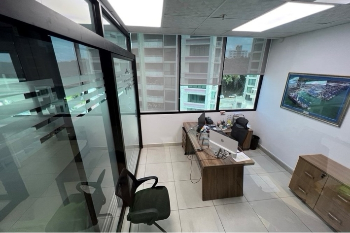 Rent a 75.71 sq. mt. office in the prestigious Edison Corporate Center, strategically located on Via Transistmica, with easy access to Ricardo J. Alfaro Avenue and El Paical. This modern space includes 1 bathroom and 2 assigned parking spaces, ideal to establish your company in a high-level corporate environment.