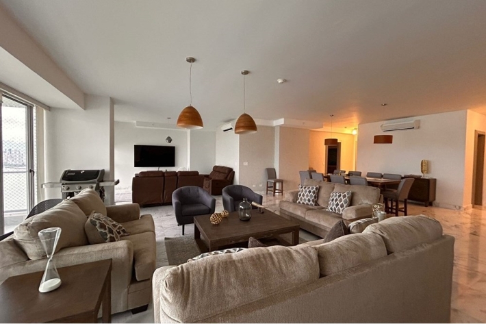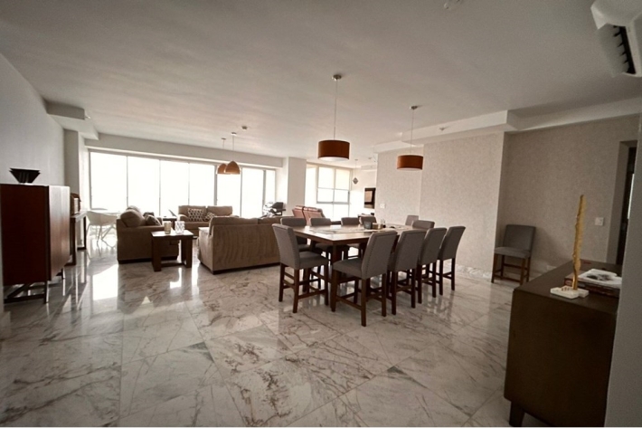 A spacious and luxurious furnished apartment is available for rent in the exclusive PH Regalia, located in Costa del Este. With a size of 300 m², the property features 3 bedrooms, each with its own private bathroom, as well as a guest bathroom. It includes 3 parking spaces and a modern social area with a pool, perfect for relaxation and enjoyment. This apartment stands out for its elegance, open spaces, and comfort, ideal for those looking to live in one of the most prestigious areas of the city.