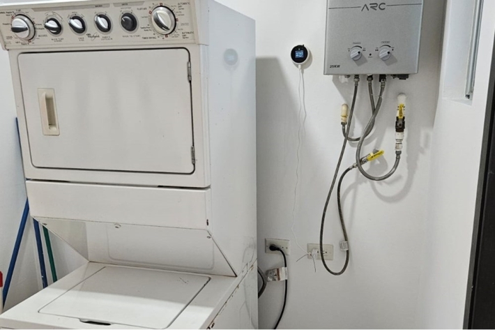 The building has two social areas, including a meeting room, billiards table, gym, covered and open terraces, and a beautiful pool.