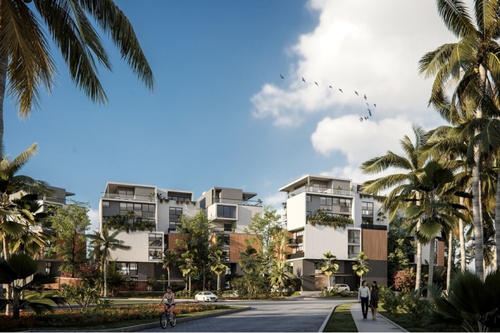 The Palms beach resort is designed in buildings with few apartments (1 or 2 per floor) with the aim of having plenty of natural ventilation and lighting and reinforcing the “island resort” feeling. The buildings are surrounded by large gardens, carefully designed paths to make you feel peace and tranquility, large terraces, large social spaces, sports and activities in open spaces, a true connection with nature, the beach and the sea.