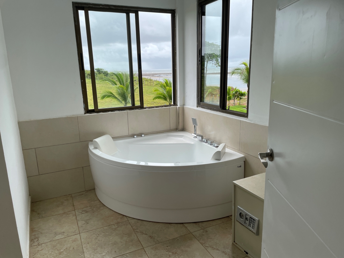 500 square metres of house (7 bedrooms with 6 bathrooms) guarantee enough space for you to invite your extended family plus a couple of friends and not feel cramped. The brand-new kitchen with teak cupboards and finishings makes you think of lavish meals on the adjoining huge terrace with a large and renovated pool on the upper floor overlooking the palm trees, the beach and the sea.