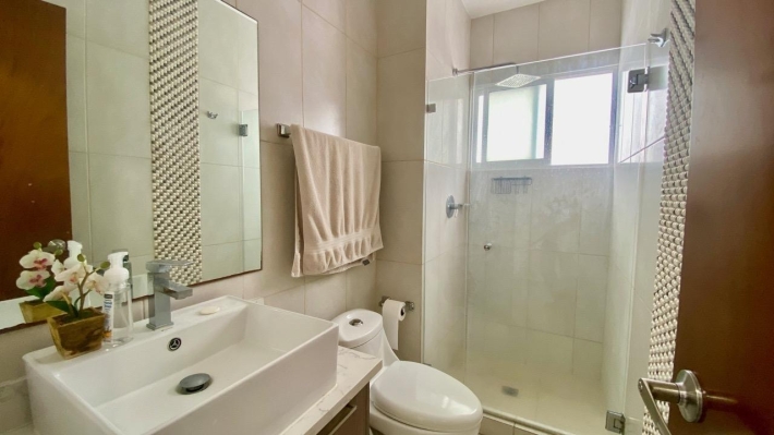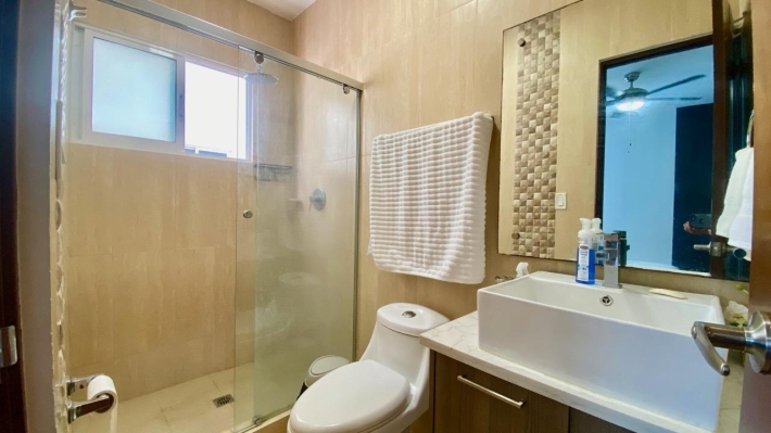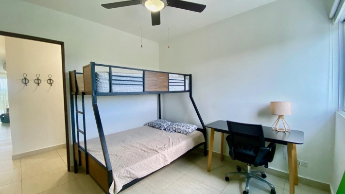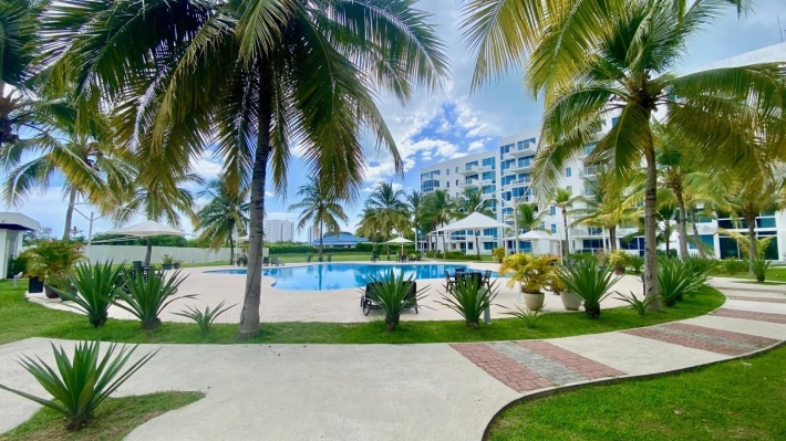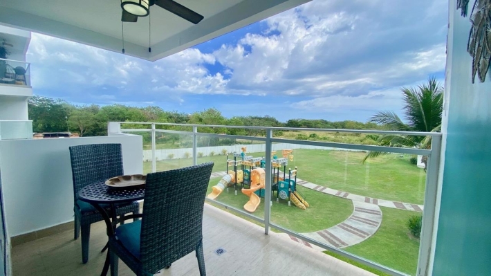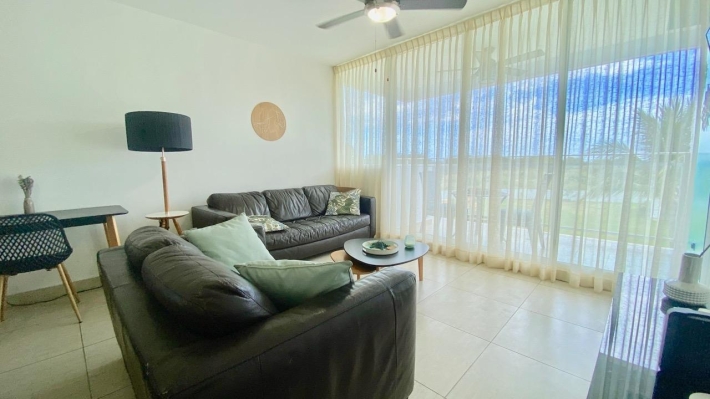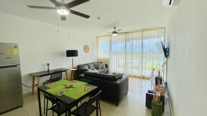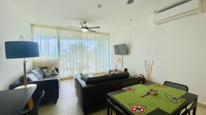 Playa Blanca Beach Resort, cozy two bedrooms apartment, in a convivial PH. THE LOCATION Rio Hato, Playa Blanca is one of the famous beach complex of Panama, about two hours from the city, and ten minutes from the international airport of Rio Hato, Scarlett Martinez. Above all, it's an area with a very important development, and a lot of opportunities. Therefore, many tourists, beautiful beaches and beach activities, a lot of restaurants and a very comfortable areas to relax is what you find here. Also, a nice commercial mall has recently opened, very useful for the whole area. Coral Park, 2021 construction. Located few meters from the beautiful lagoon pool of Playa Blanca Beach Resort, the second biggest swimming pool in central America, here is a PH with a private pool, kids park and garden. Coral Park is well located in a quiet environment. THE APARTMENT 2-bed/2 bath apartment, with a comfortable balcony and unobstructed view, overlooking the private pool of the PH. With a 100 sqm plus terrace, this 2-bedroom beach apartment will seduce you not only with its volume, but also with its views and its comfort: - Entrance - Living room with dining area and terrace access, - Open kitchen, fully equipped, - 2 bedrooms, one with en-suite bath, - 2nd bathroom - Washer & Dryer, - Terrace open view, - one parking. THE PROJECT To conclude, this is the perfect place to escape the city jungle for weekends or holidays. Ensenada beach complex has all you need to relax and enjoy your stay. It can also be a very profitable investment if you are looking for some rentals incomes AirBnb OK!