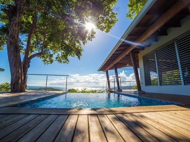 This luxurious home in Playa Venao is in a prime location at the top of the gated community Lomas de Playa Venao. The covered hardwood deck and infinity pool are simply stunning. The views from the home are among the best in the entire area. You have a commanding view of the whole bay of Playa Venao and also the hills around the bay. You’re also a short drive to the beach, but far enough into the trees so that deer and monkeys are regular visitors. This custom home was built in 2014. The builder is still one of the most sought-after in the area. The original owners own the home and they have used it sparingly as a vacation home. This is the first time it has ever come up for sale. The built area is distributed as follows: Main House: 274m2 total; 163m2 interior, 111m2 exterior. Guest House: 46m2, Car Port/Storage 60m2 The asking price of this luxurious home in Playa Venao includes furniture and appliances. Contact us for more details and to schedule a showing.