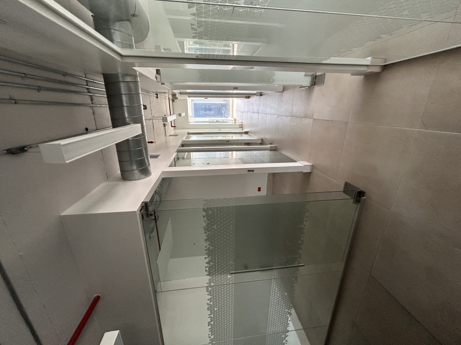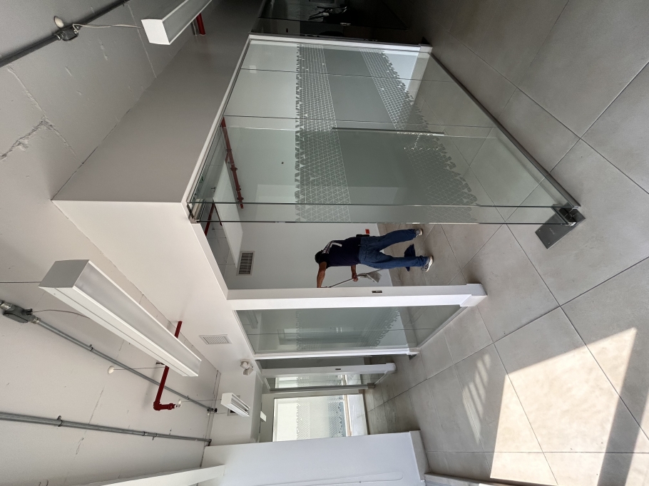 The offices have an internal layout consisting of: a lobby/reception area, a director's office with an integrated restroom, a conference room, management and administrative offices, a training room for 50 people, a corridor, and three half restrooms.