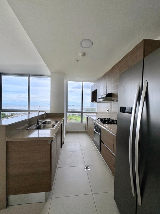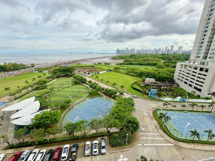 Elegant and modern 3-bedroom apartment, master bedroom with walk-in closet, living-dining room, family room, closed kitchen, maid's quarters and bathroom, appliances included, and a large balcony with views of the ocean and the city skyline. Located in the exclusive Costa del Mar community, MAUI stands out for its avant-garde architectural design, energy efficiency, and luxury finishes. Building features: Double-paned windows, thermal insulation, central A/C with VRF system, elegant lobby with controlled access, 2 parking spaces + visitors, 36-story tower, 4 units per level, exclusive amenities: adult and children's pools, sports courts, gyms, green areas, bike path, event rooms, sauna, Turkish bath, object library, playgrounds, and more. A sophisticated home in one of the most sought-after areas of Panama.