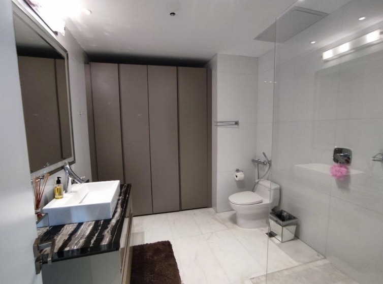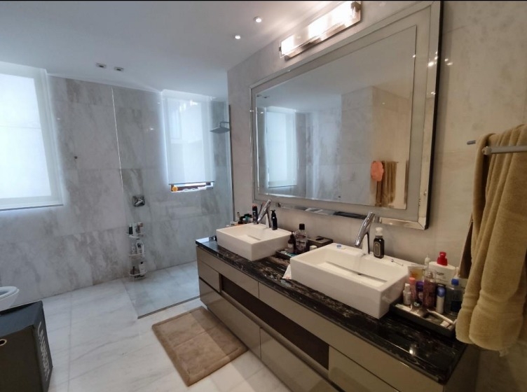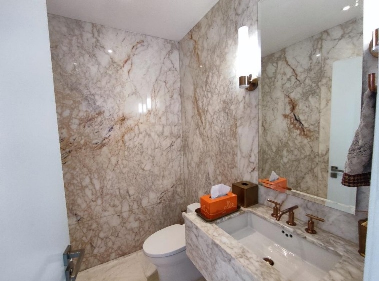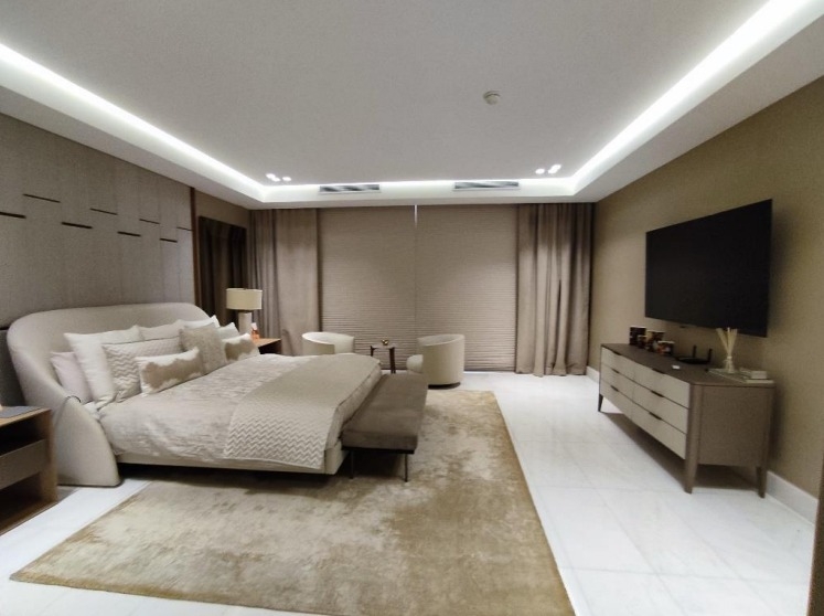 Luxury finishes: marble floors, gypsum ceilings with recessed lighting, decorative wallpapered walls, imported fixtures with marble finishes