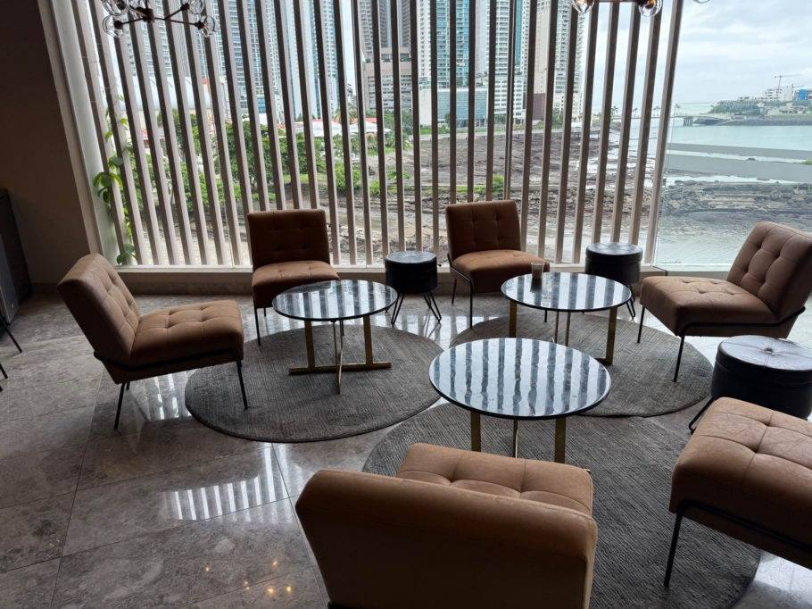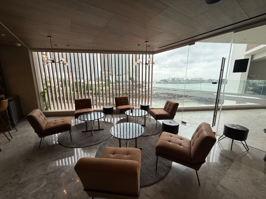 The Grand Lobby: waiting room, ocean-view terrace, and Business Salon