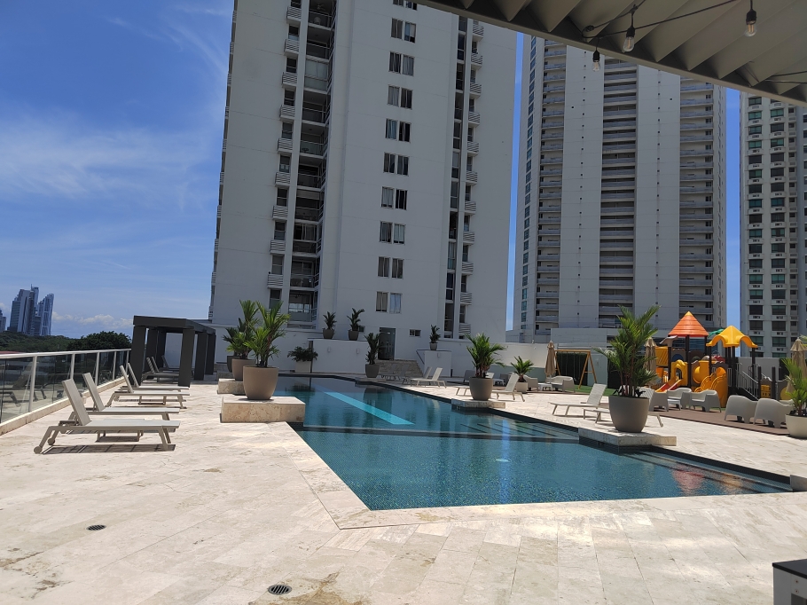 Beautiful apartment with panoramic views, located in one of the best areas of Panama City, close to all points of interest. It features spacious and comfortable social areas, a paddle court, coworking space, swimming pool, gym, sauna, children's area, and pet area, among others.