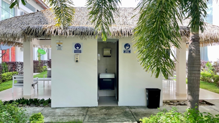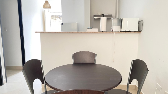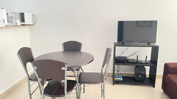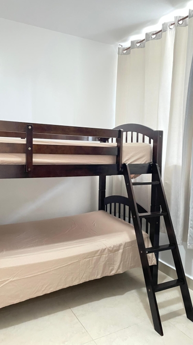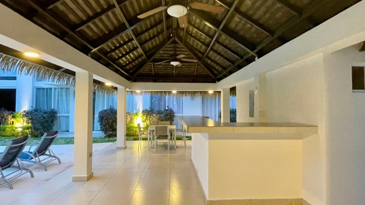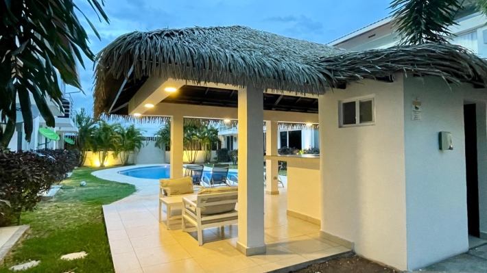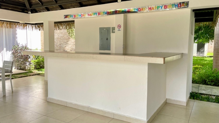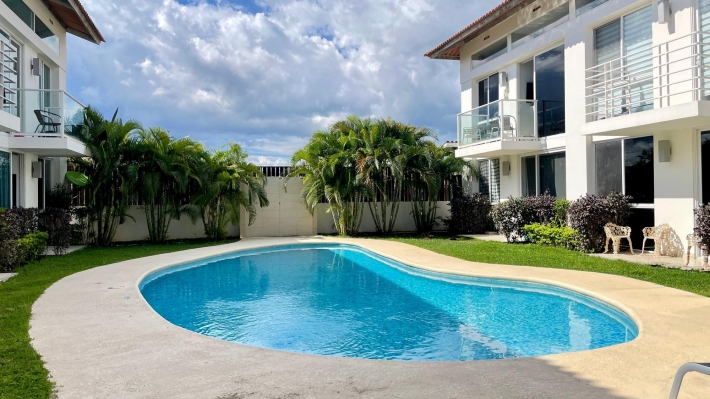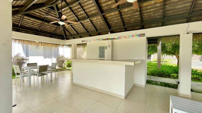 For sale and rent, this cozy ground-floor apartment is located in Coronado, in the PH. Paraiso Village VIP. It features two bedrooms, one bathroom, a living-dining room, a breakfast nook, and an internal laundry room. It also has 24-hour security. It also has two social areas, both with a pool, huts, and showers.