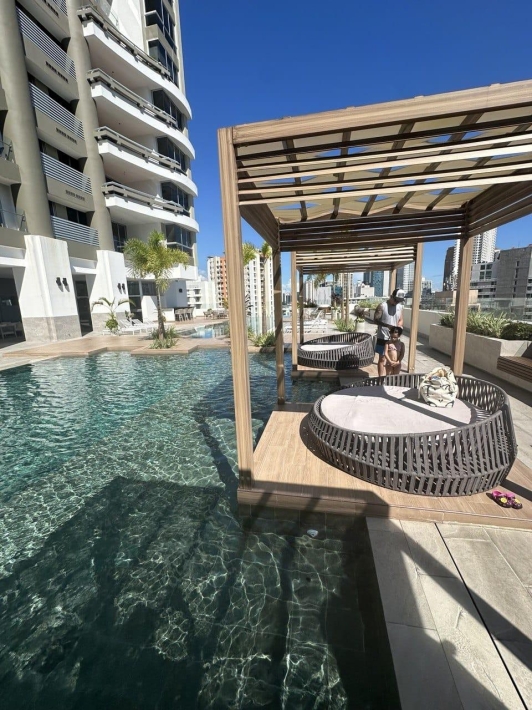 Beautiful and spacious apartment in the center of Cangrejo, luxurious and brand new building!! 147 m2 -3 bedrooms with 3 private bathrooms -1/2 guest bathroom - maid's room and bathroom - open kitchen - dining room - laundry room - large balcony with access from the living room and the master bedroom (spectacular view) 2 Parking spaces SOLD WITH APPLIANCES (all equipment is inverter) Building amenities: ~ Social area with 3 swimming pools and jacuzzi ~ gym ~ party room ~ playground ~ nursery ~ beauty salon ~ massage room ~ sauna ~ roof top with jacuzzi ~ game room Sale Price B/. 375,000
