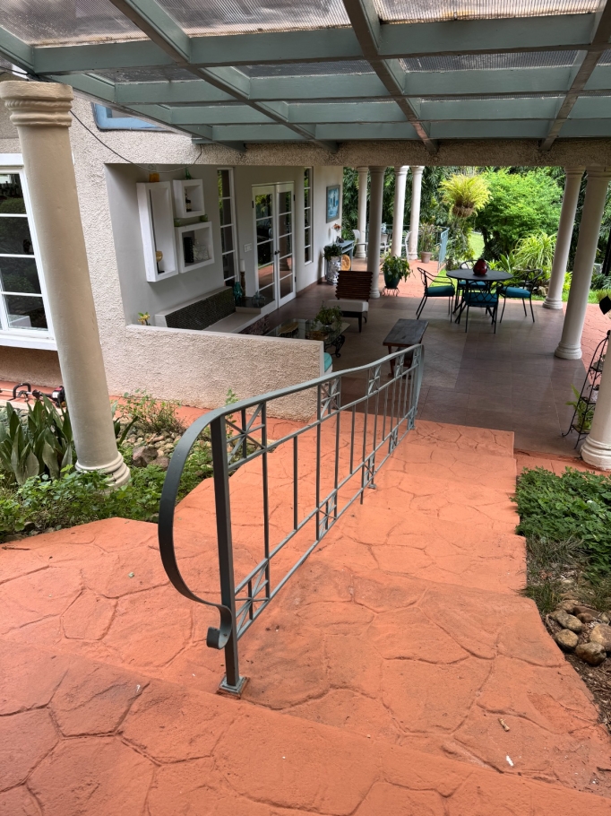 Service area with maid's bedroom and bathroom, laundry room, and clothesline