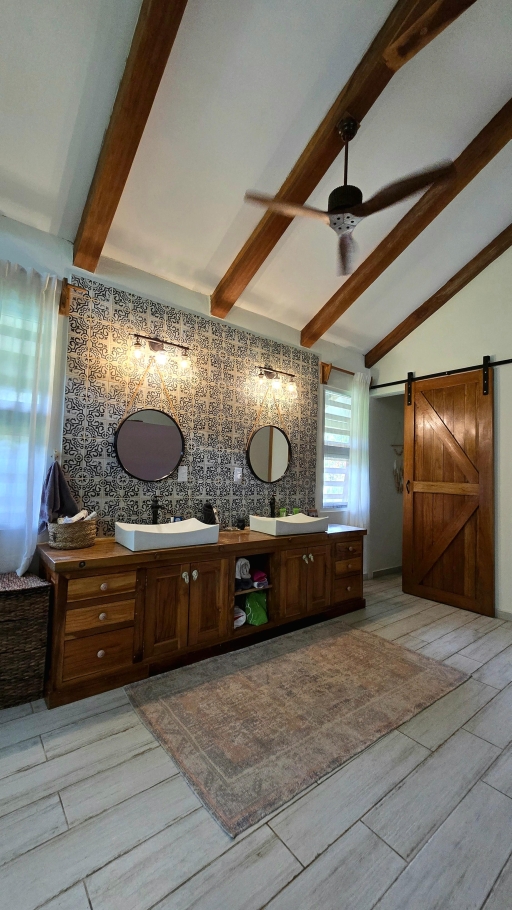 Your personal oasis is located in the Nueva Suiza district, which rightly bears this name, between Cerro Punta and Volcán. On a lovingly landscaped park-like area of 13,630 m² with mature trees, exotic plants, numerous fruit trees, and an enchanted garden pond, nothing stands in the way of realizing your dreams at a pleasantly refreshing altitude of 1,750 meters above sea level.
