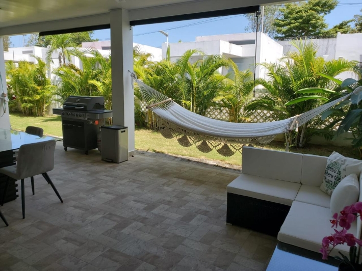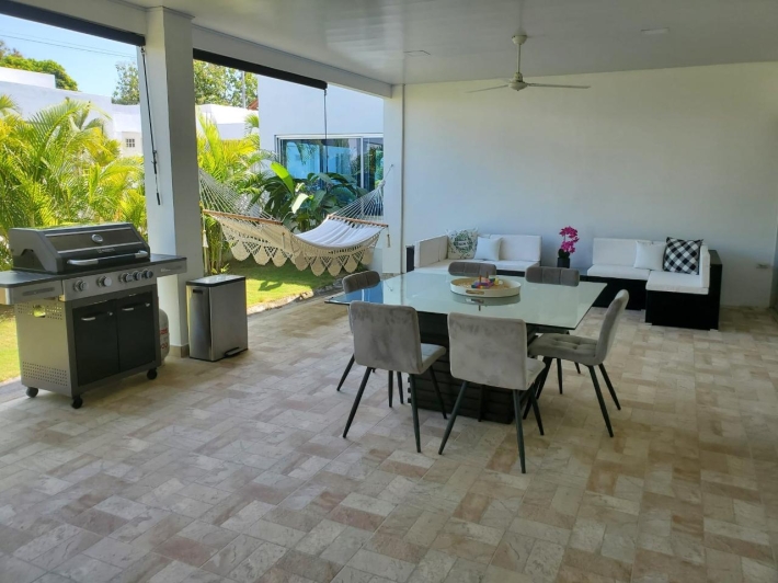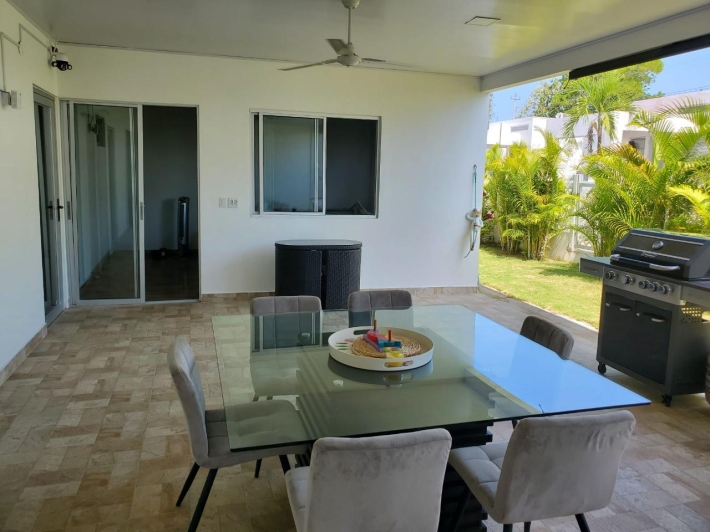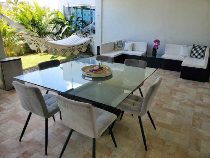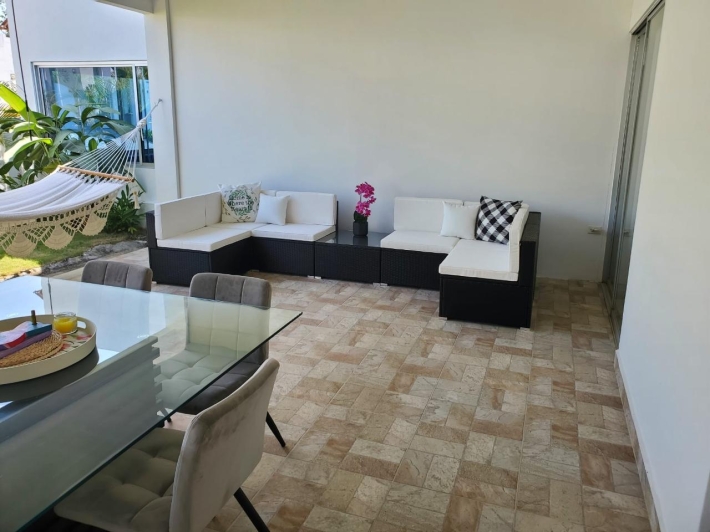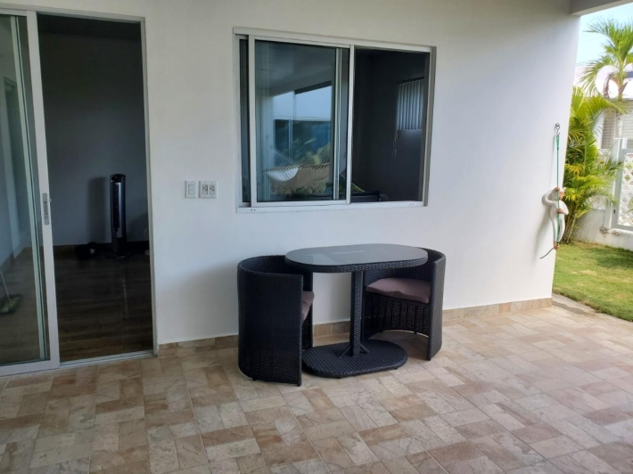 Welcome to this newly renovated modern 3 bedroom villa in the gated community of Ibiza Beach Residences. Only a few minutes from the beach and under 2 hours from Panama City, this secure and delightful residence is a wonderful option at a great price! This home has been completely remodeled from the ground up with top of the line finishes and attention to every detail. Custom Italian kitchen with quartz counters. Open concept living/dining with beautiful high vaulted ceilings. A large, covered outdoor terrace perfect for entertaining or simply relaxing. The master bedroom comes with its en-suite bathroom. Large 2nd bedroom. Third bedroom comes with half an en-suite bathroom, perfect as a guest suite or family/recreation room. All rooms have direct walk out to the outdoor backyard/terrace. This is an incredible turn key property, it comes fully furnished with all new contemporary furnishings and accessories. Great as a second home close to the beach or for all year round living. Contact us now for more information or for a visit.