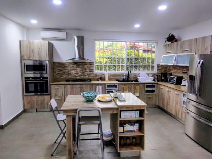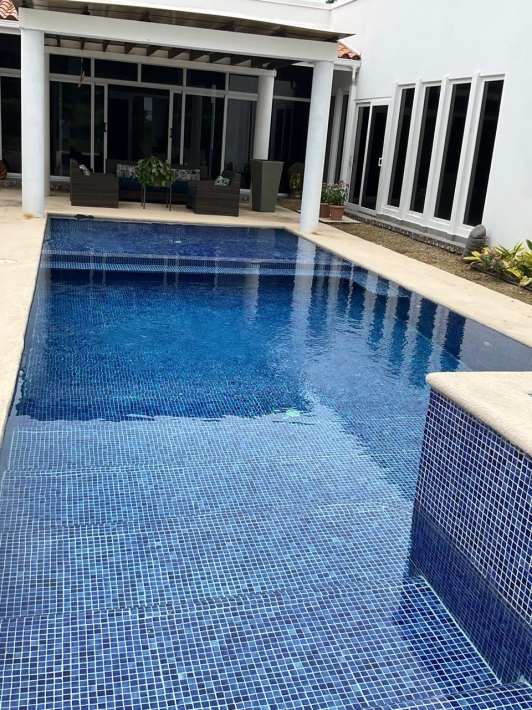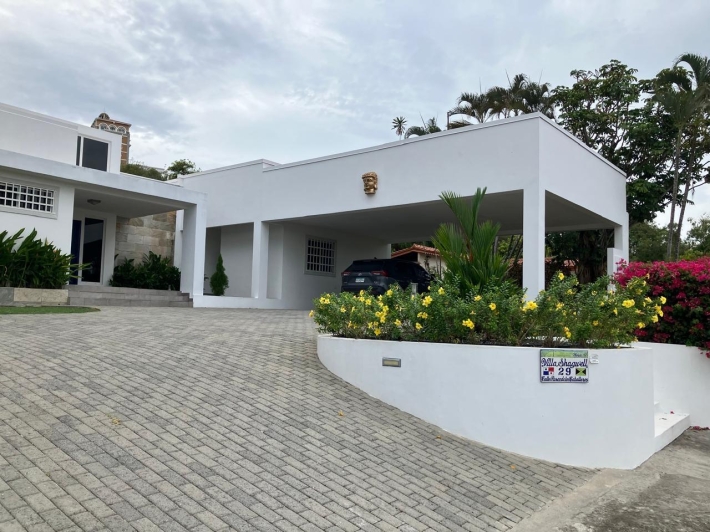 Beautiful residence located in the Coronado Golf Club, with 1,250 square meters of land, with the possibility of purchasing another adjacent 1,250 square meter lot: It consists of 4 bedrooms, the master bedroom with a walk-in closet and bathroom, 3 secondary bedrooms, each with its own private bathroom and walk-in closet, a bathroom and a maid's bathroom. Two storage rooms, one inside and one outside. Enclosed laundry room, an inside and outside storage room, many open areas, and an outdoor terrace and BBQ area. Power generator. Large spaces. Indoor dining room, with a recently remodeled kitchen, and laundry room. Spectacular outdoor terrace with dining and outdoor living room. BBQ area, pool with water heater and whirlpool jacuzzi, children's area, and trees and ornamental plants for the enjoyment of the area with your family. Beautiful skylights. 3 covered parking spaces and several additional spaces. Wooden security doors. The spacious living space provides light and fresh air throughout the residence. Air conditioning and ceiling fans are included. Possible access to the Golf Club, Beach Club, and Club Coronado facilities, and the option to purchase a golf club share for golf enthusiasts. This is a perfect residence for a large family. It's lush with greenery, well-maintained, and offers plenty of space to enjoy the outdoors without the hustle and bustle of other areas. It's private, fenced, and has all the amenities within. Access to the beach is a 10-minute drive. Access to the Golf Club is a 5-minute walk. Access to major supermarkets, restaurants, shops, and public and private services is also available.