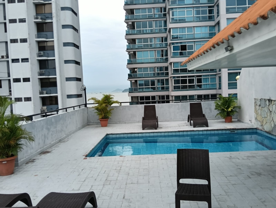 I sell apartment of 2 bedrooms and two bathrooms plus room and bathroom of employee, it sells with all furniture and air conditioners, social area with swimming pool, excellent panoramic view, good neighbors, shopping center cercaa, restaurants, Beauty salon, banks, acceco to main and public streets, social area with swimming pool and bar to entertain visitors, near the park and soccer field