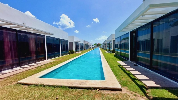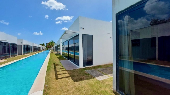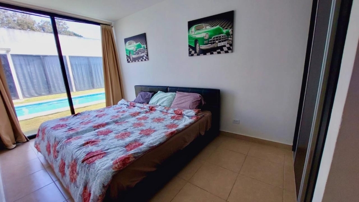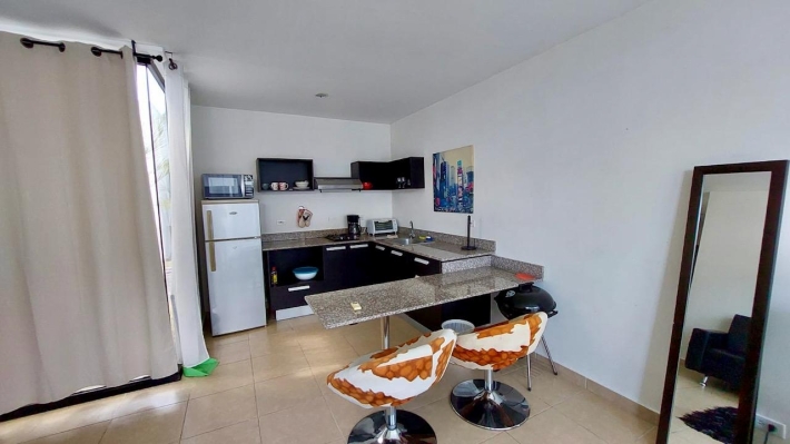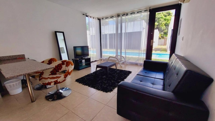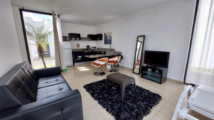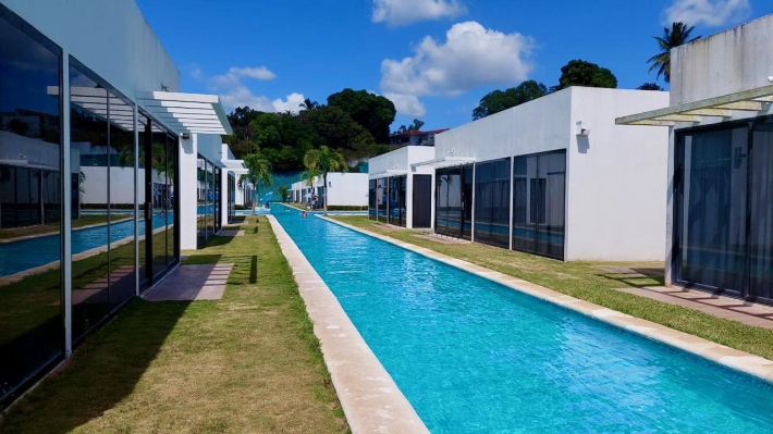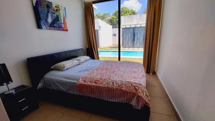 A villa for sale located in the Rio Hato area, Kilometer 108 of the Inter-American Highway, at the entrance of the Bijao Sheraton. The project consists of 110 villas with a reception, restaurant, gardens and parks. It stands out for its canal-shaped pools around the villas, providing direct access for the family for greater comfort and security. The villa has 2 bedrooms, 2 bathrooms, an equipped kitchen and is fully furnished, with a construction of 67 m2 in 2012. In addition to its large pool, the complex offers a social area and a playground. It is located 5 minutes from Bijao beach, 12 minutes from Coronado and close to the Rio Hato international airport. The place is ideal and designed for vacation rentals/AIRBNB to generate additional income about $150-$250 a day. MAINTENANCE IS $220/MONTH AND INCLUDES ALL UTILITIES (internet-cable-gas-garbage-maintenance of the complex, social areas and pools). Electricity is not included, charged only if there is consumption: $15/day.