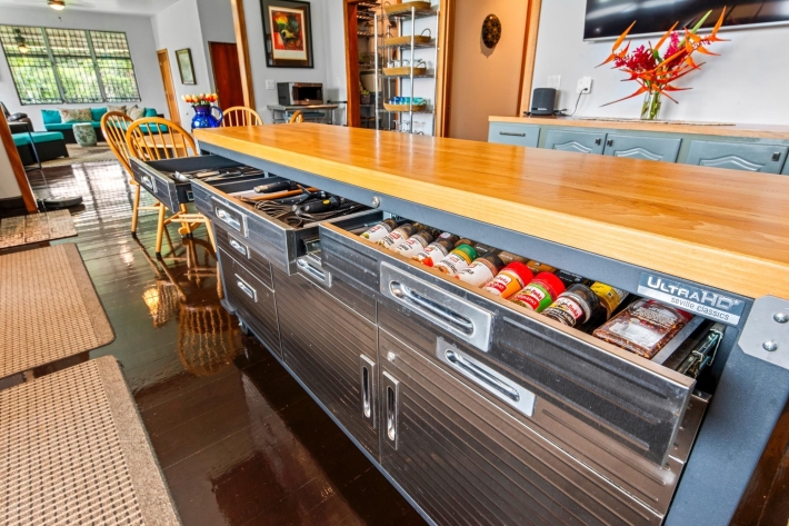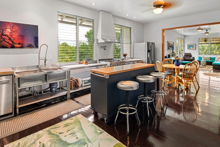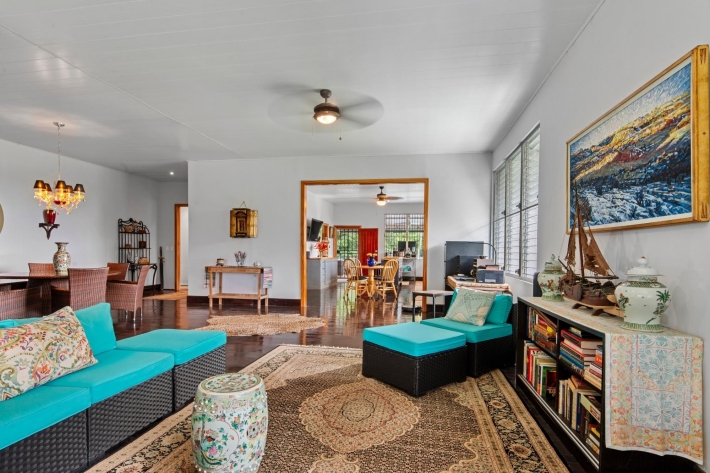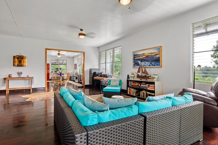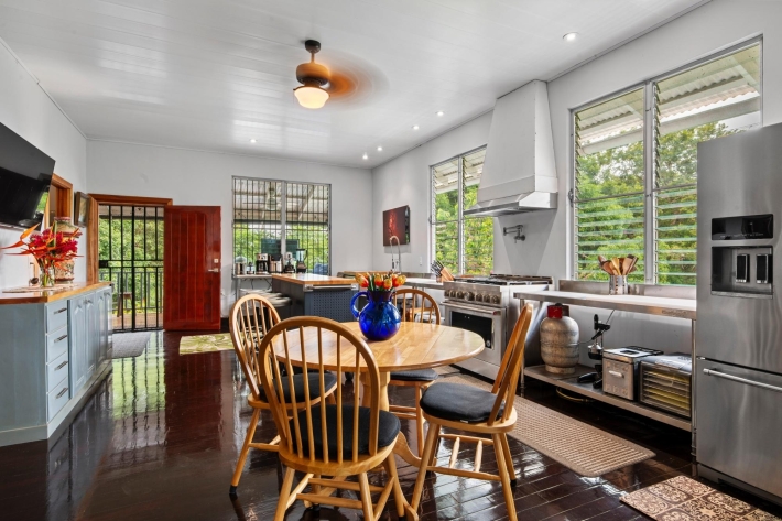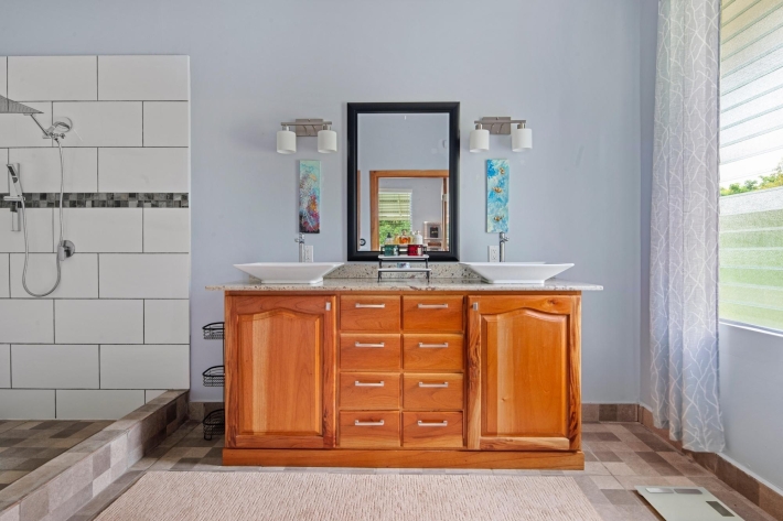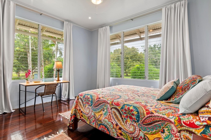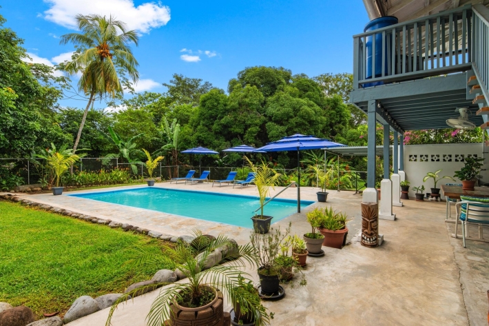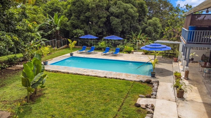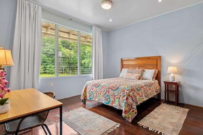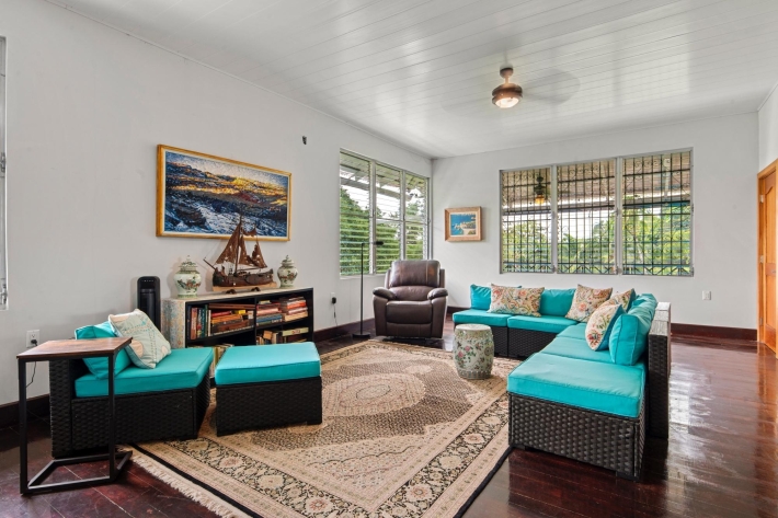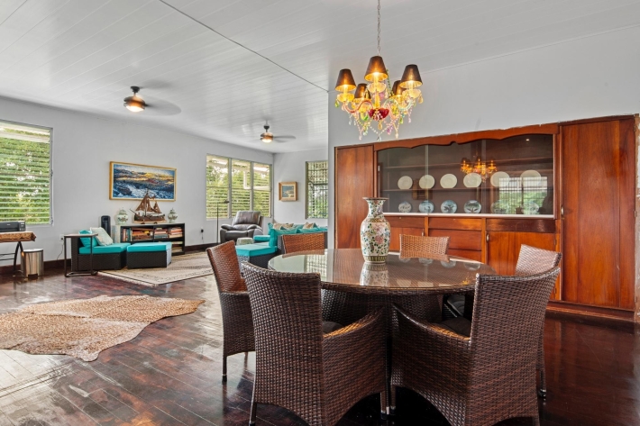 Where history meets modern day, this beautiful newly renovated and decorated Chiquita Banana Executive home in the beautiful neighborhood of Las Palmas, Puerto Armuelles is now for sale. Puerto Armuelles is a coastal town on the west end of Panama near the border of Costa Rica, known for its history as a banana port. It is a thriving town with new roads, a new hospital and major investment potential as a multi-purpose port is being built, that is expected to generate thousands of jobs and attract investment in the region. This beautiful home was one that was originally built for the Chiquita Banana executives and engineers during the company’s presence in the coastal town of Puerto Armuelles. These homes are characterized by their classic tropical colonial design featuring large overhangs, hardwood floors and ventilation for the tropics. Some were built on stilts to allow for airflow and avoid dampness. Las Palmas offers a peaceful atmosphere while being walking distance to town. This home has been completely renovated by a professional decorator and sits on a large beautifully landscaped property with fruit trees all around and surrounded by a deep ravine with a creek and beyond is a nature preserve. You will see and hear howler monkeys and toucans cruising amongst the trees. The home is approximately 2700 sq ft of living space upstairs with the same footage below and is 100% secured with new security bars and can be used for parking or party space. This spacious home has 3 large air conditioned bedrooms and modern bathrooms with top of the line fixtures.