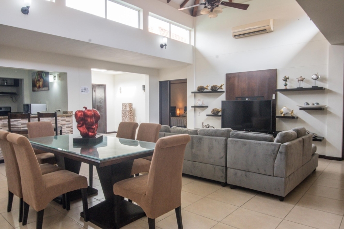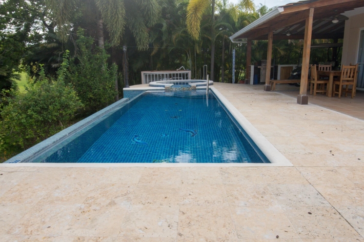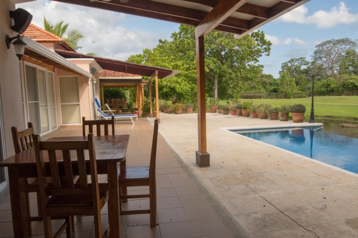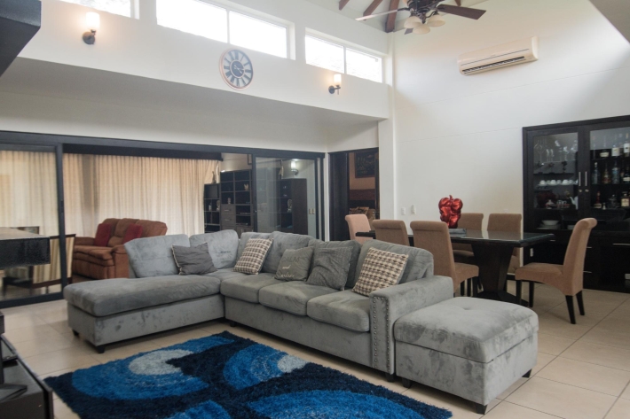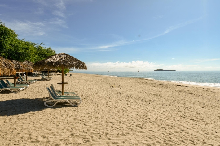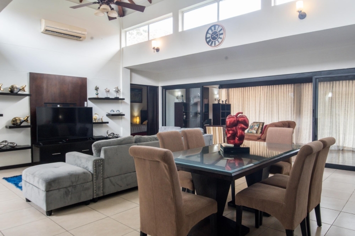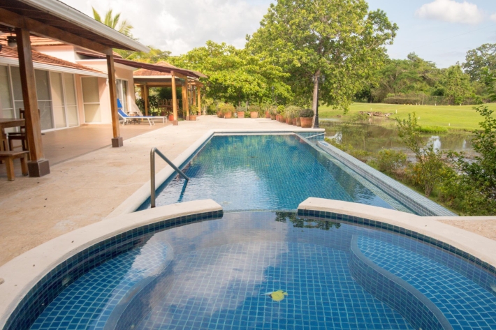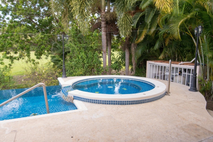 Elegant Villa with Private Pool in Costa Blanca Golf & Villas, Decameron Discover this elegant single-level villa offering privacy, space, and comfort within the exclusive community of Costa Blanca Golf & Villas by Decameron. With a built area of approximately 250 m² (2,691 sq. ft.) on a plot of 992.56 m² (10,686 sq. ft.), this home blends tropical charm with refined living. Surrounded by lush trees and manicured gardens, the property features a private swimming pool, a covered terrace, and large sliding glass doors that seamlessly connect indoor and outdoor spaces, perfect for relaxing or entertaining guests. Inside, the villa includes three bedrooms plus a maid’s quarters, three and a half bathrooms, and a bright, spacious kitchen connected to the dining and living areas. The master suite stands out for its generous size, bathtub, and floor-to-ceiling windows overlooking the pool. Each bedroom offers en-suite bathrooms, walk-in closets, and direct garden access. Additional highlights include: Covered parking for up to three cars and extra outdoor spaces High-speed internet throughout the property Lateral and central access doors for convenient flow Laundry area with functional layout Ownership includes a golf membership at the Mantarraya Golf Course, located just steps away, and access to the private Beach Club only three minutes from the villa. The gated community provides 24/7 security, tennis and multi-use courts, and monthly maintenance covering water, gas, lawn care, and trash disposal. Enjoy the best of resort-style living in a peaceful and secure environment.