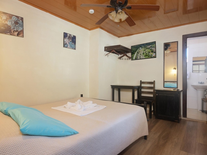 Hotel Central Boquete presents a compelling real estate investment opportunity in gorgeous and growing Boquete, Panama. With a very prime downtown location, a well-established stream of clientele and promising investment prospects, the hotel for sale represents a coveted opportunity. The hotel is quite large. At approximately 9,700 square feet, the building has plenty of space. It features 13 guest rooms and 19 beds in total (with 10 rooms en-suite), each tastefully appointed and equipped with modern amenities. There are four types of rooms to accommodate different needs – individual rooms, double, triple and quadruple rooms that easily accommodate families or groups and a room designed to accommodate handicapped guests. For gastronomy enthusiasts, the hotel's prime location is unparalleled. Boquete’s depth of fantastic restaurants is truly amazing. Many of the best are just a short stroll from Hotel Central Boquete. With so many renowned establishments nearby, investors can leverage the allure of Boquete's culinary scene to attract prospective clients and tenants. The location is really ideal for a hotel in Boquete close to the town’s amenities. The hotel itself is perfectly suited for tourists seeking to enjoy Boquete’s attractions. Its rich, wooden features on the walls and ceilings pay homage to the tropical mountain setting.