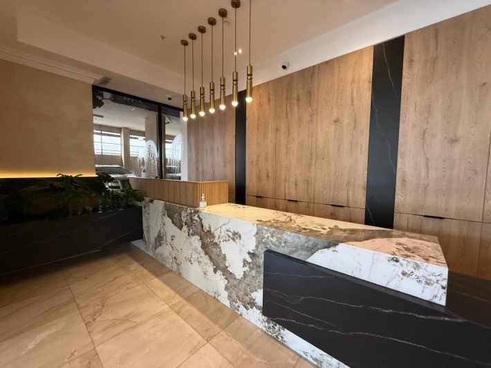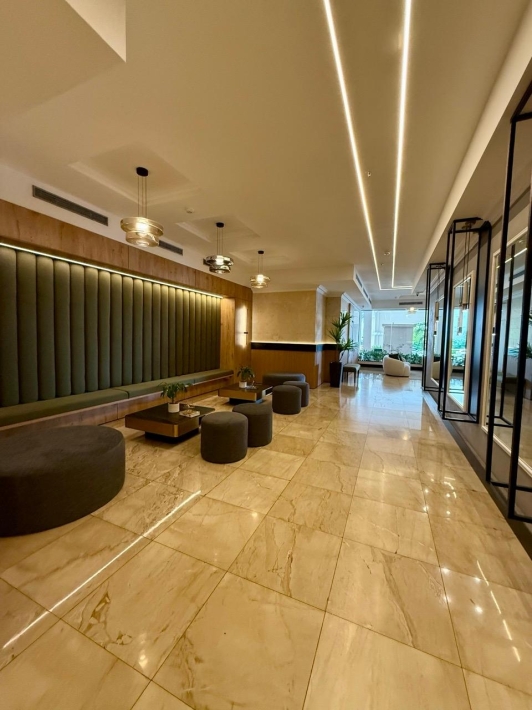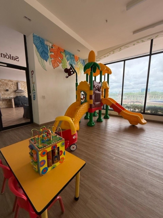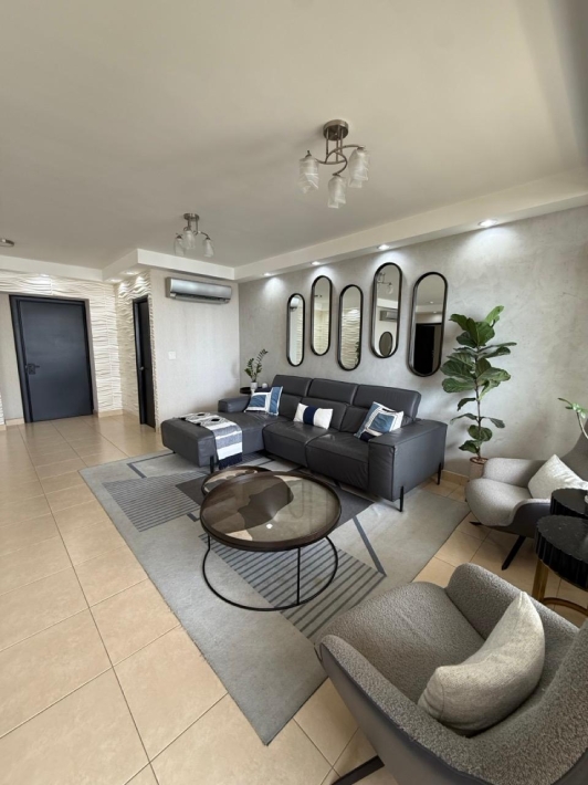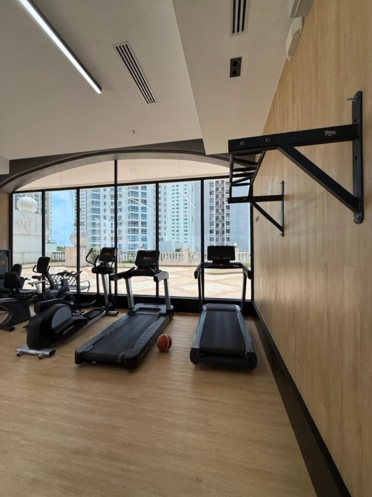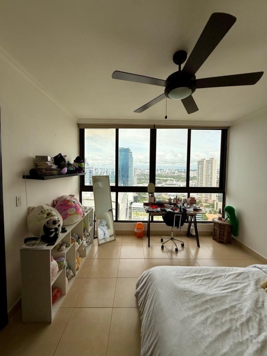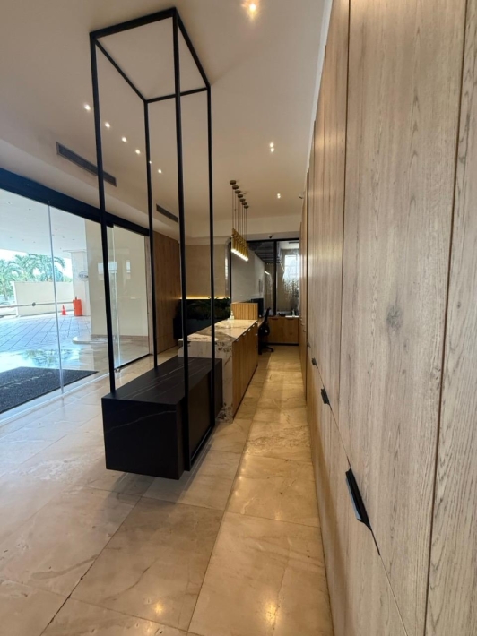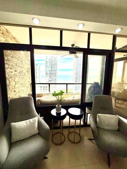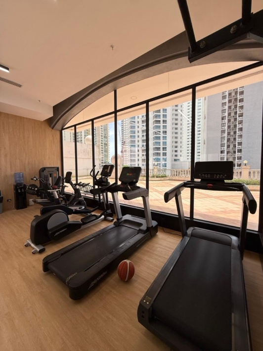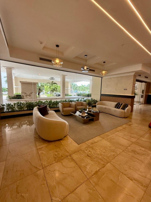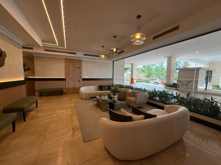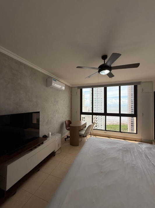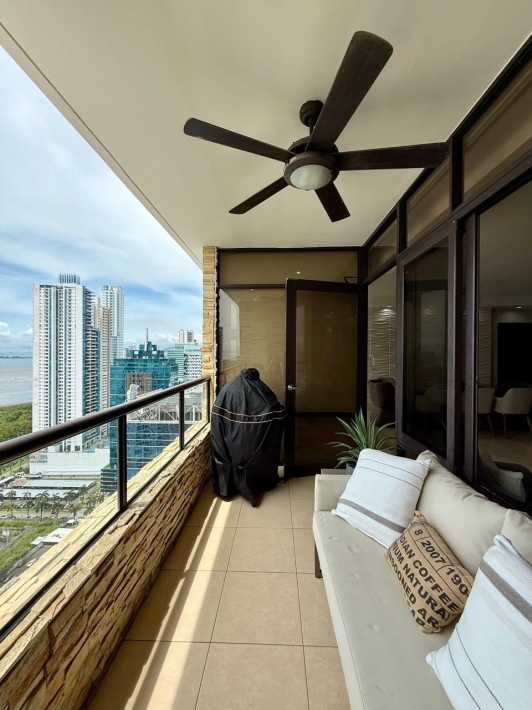 Fully furnished apartment for rent in Parque del Mar, with ocean views, high floor, with large balcony, living and dining room, a family den, 3 bedrooms with bathrooms, a kitchen with a laundry room and a maid's room, air conditioning and appliances, 2 parking spaces. It has an excellent location, close to multinationals, shops, restaurants, banks, schools, recreational area, and more.
