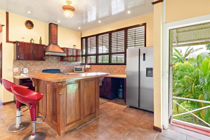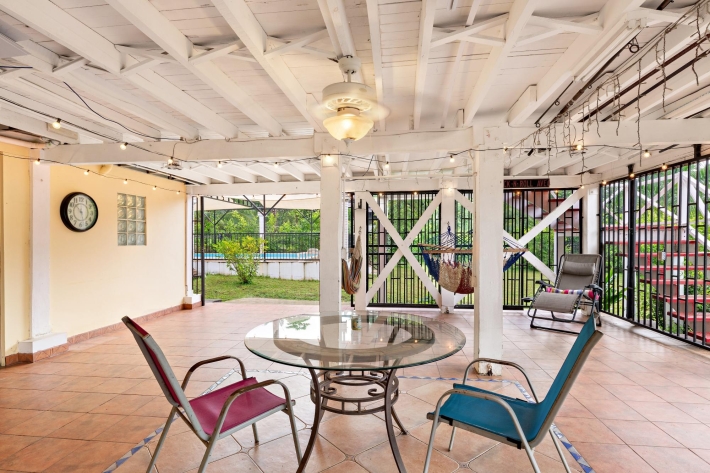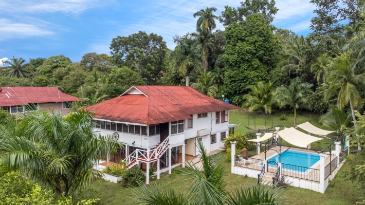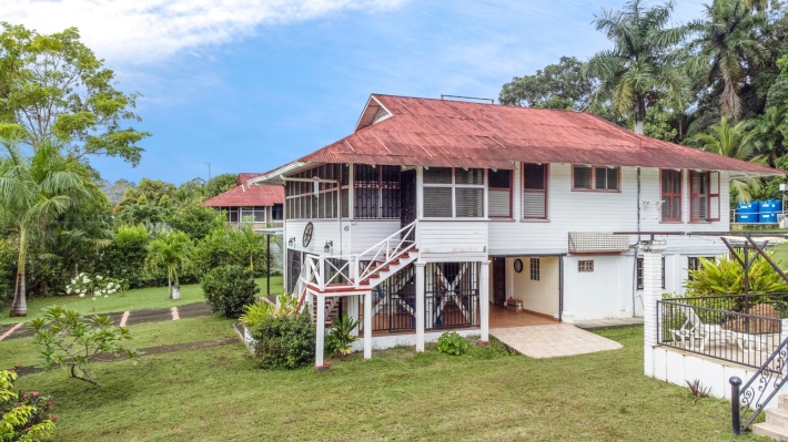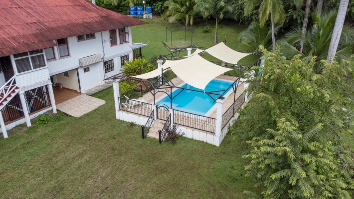 Here is a unique opportunity to own a historic Chiquita Banana Company executive home at an amazing price in the upscale neighborhood of Las Palmas, Puerto Armuelles, Panama It is only half a kilometer to downtown shopping and a 5 minute drive to the Pacific Ocean. Puerto Armuelles is a coastal town on the west end of Panama near the boarder of Costa Rica, known for its history as a banana port. It is a thriving town with new roads and a new hospital and major investment potential with a multi purpose port being built that is expected to generate thousands of jobs and attract investment in the region. This beautiful historic home sits on 2,800 m2 of titled landscaped and fenced property with electric gate entry and boasts a covered in-ground fiberglass swimming pool. It is nestled near a jungle eco reserve with many walking trails you can enjoy the sights and sounds of nature. The home has 3 bedrooms and 4 bathrooms with 908 m2 (2,980 sq ft) total covered living space. These executive homes are characterized by their classic colonial design built on silts to allow for airflow and avoid dampness with hardwood floors and ventilation for the tropics. Below the main living space is a secure Lanai great for gatherings, lavish parties or quiet afternoons swaying in a hammock amidst lush tropical surroundings. The home comes with 8 camera security system , fans throughout, a/c in the master bedroom, stainless steel appliances and 6,000 liter(1,585 gallons) ozone treated water tank system.
