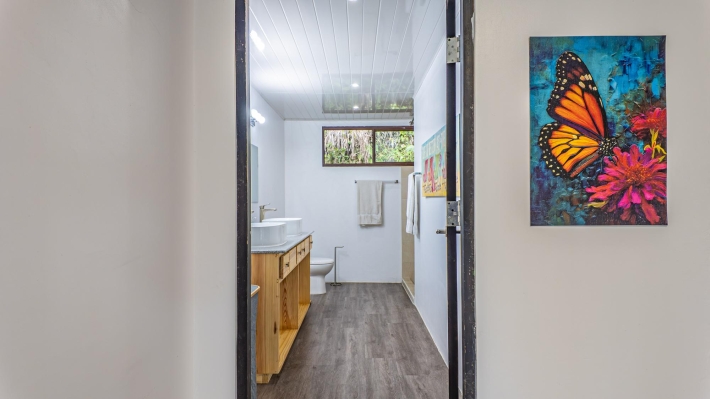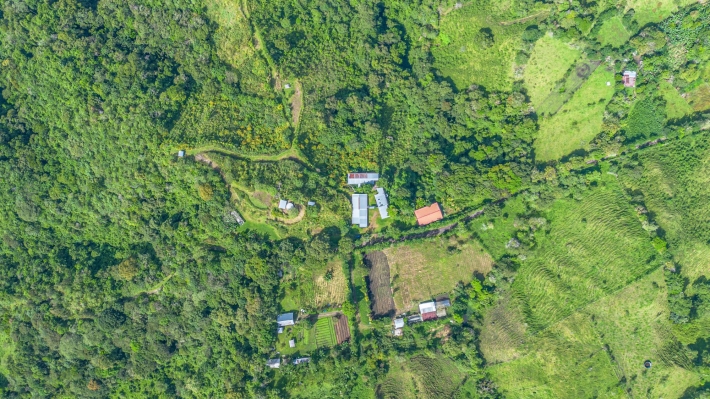 Between the Pacific Ocean, Volcan Baru, and the stillness of nature, lies a property that invites a different pace of life—one that blends self-sufficiency, freedom, and connection. Located in the peaceful hills of Caisán Primavera, this 15-hectare titled property presents a rare combination of fertile land, natural water sources, panoramic views, and ready infrastructure. It’s designed for those who value independence and authenticity, whether to live privately, develop a retreat center, or establish an eco-project in Western Panama. It features six natural springs, two of which provide year-round, drinking-quality water. A complete self-sufficient water system is already installed. This property includes three main houses and additional structures, each positioned to take advantage of the natural elevation and panoramic views. Set at an elevation between 950 and 1,100 meters, the property enjoys a cooler, less windy climate than nearby Volcán while maintaining impressive views of both the Pacific Ocean and Volcan Baru. The land consists of approximately 70% mature forest, 20% former pastureland, and 10% developed areas with houses, gardens, and internal paths. The property includes a 900-meter private road accessible by four-wheel drive, several water springs, and cultivated zones with tropical fruit trees and a bamboo grove. It combines isolation and tranquility without sacrificing access. Additional structures include a 21m² stable, a 65m² greenhouse (steel frame, needs new cover), a natural brick pool (2x2x1.5m), and an 80m² covered tool and fitness area. A 110m² panoramic terrace provides 180° views of the Pacific Ocean.